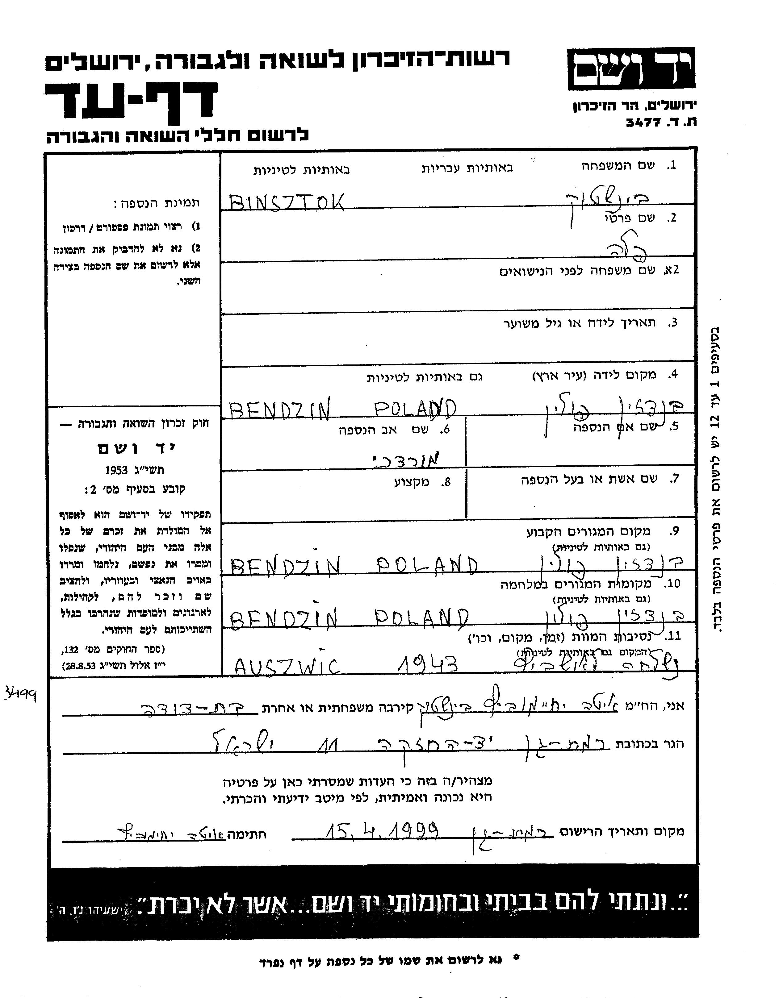 יד ושם - המפעל להנצחת השמות בדפי עד
