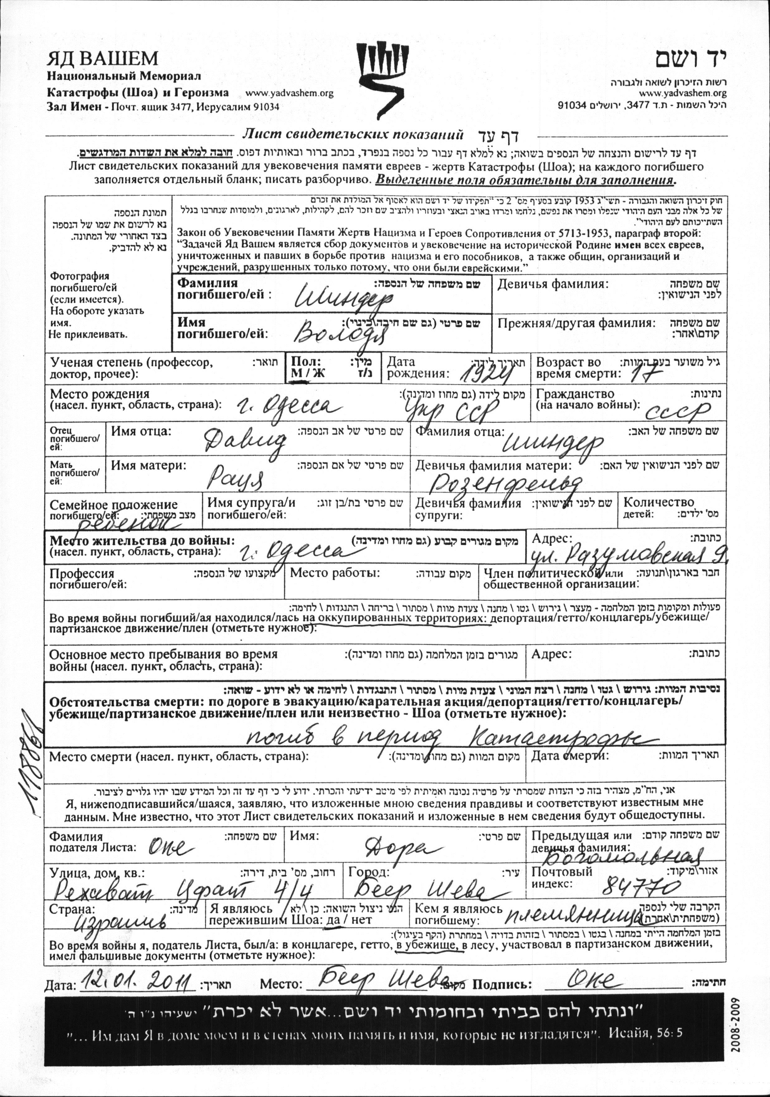 יד ושם - המפעל להנצחת השמות בדפי עד