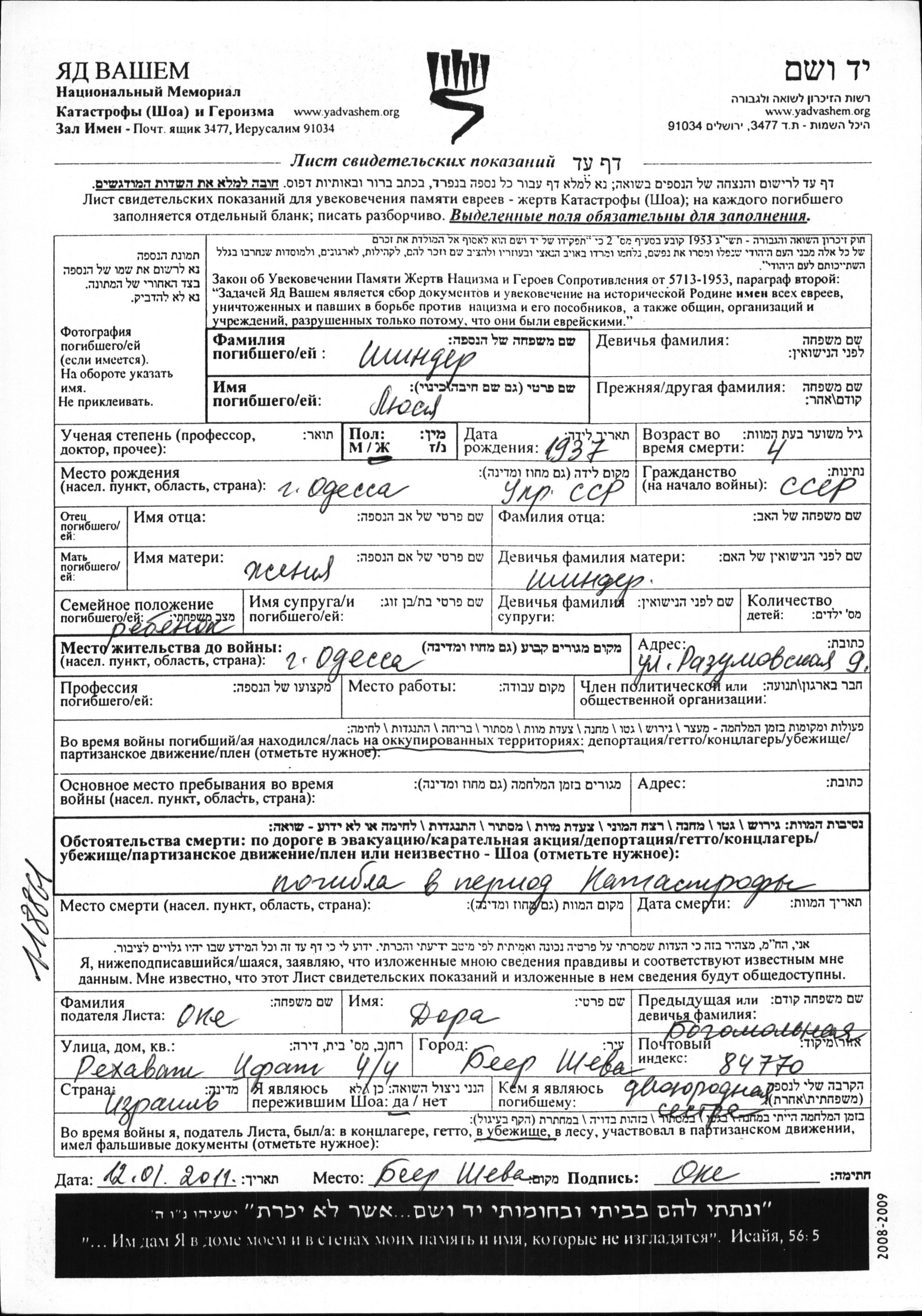 יד ושם - המפעל להנצחת השמות בדפי עד