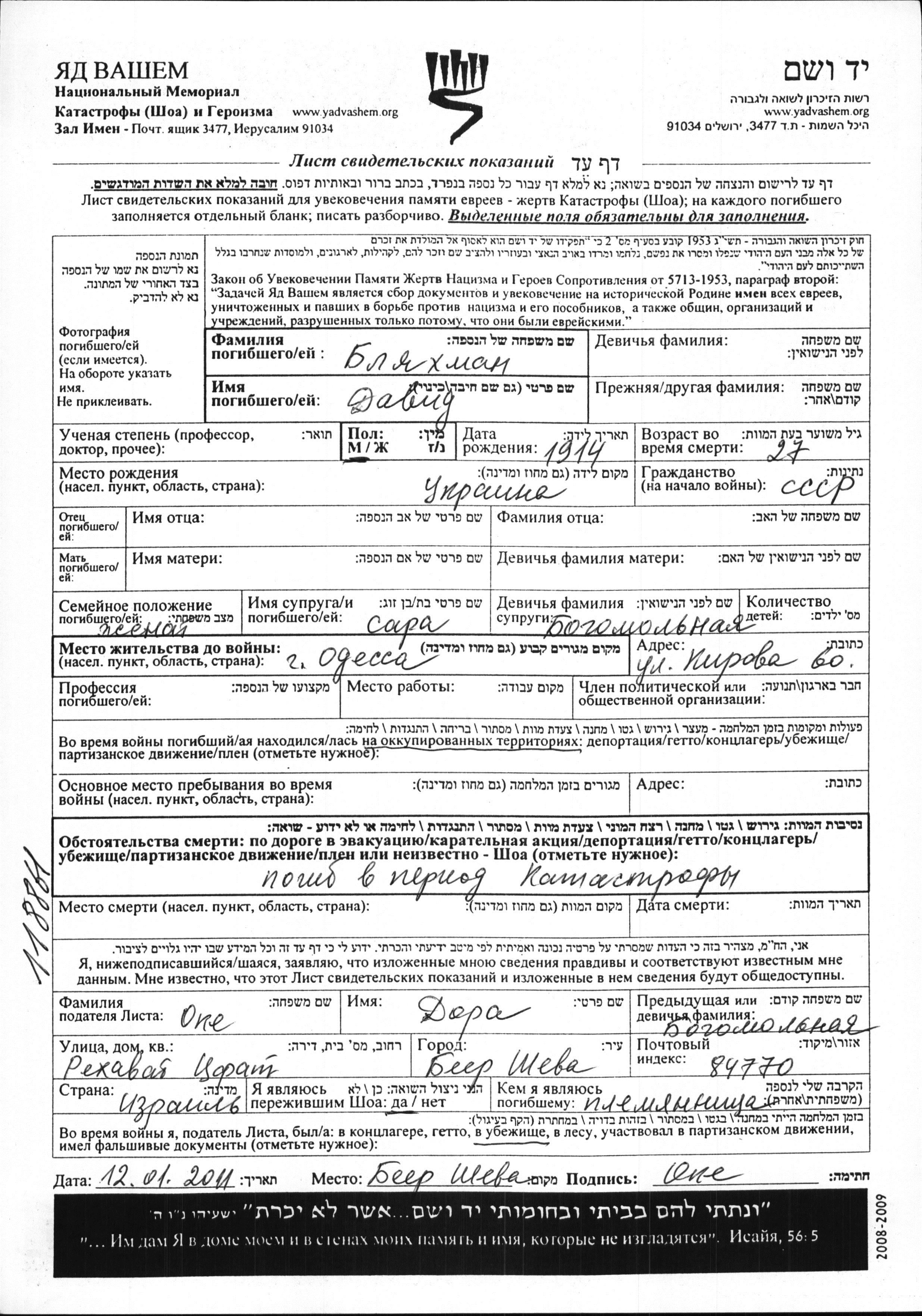 יד ושם - המפעל להנצחת השמות בדפי עד