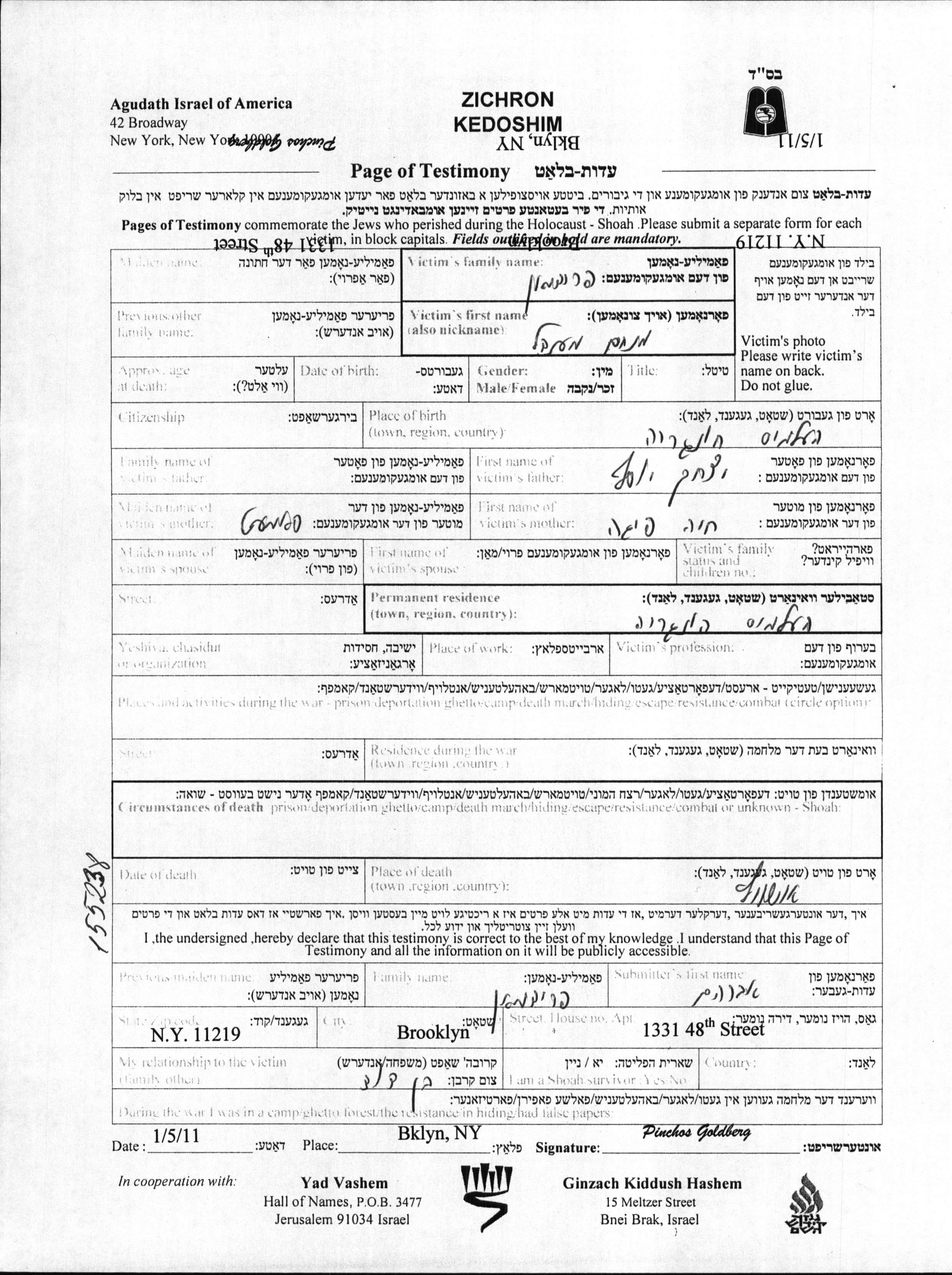 חיפוש שם מוסר דף העד. חיפוש לפי כל שם פרטי, כולל כינוי או שם חיבה