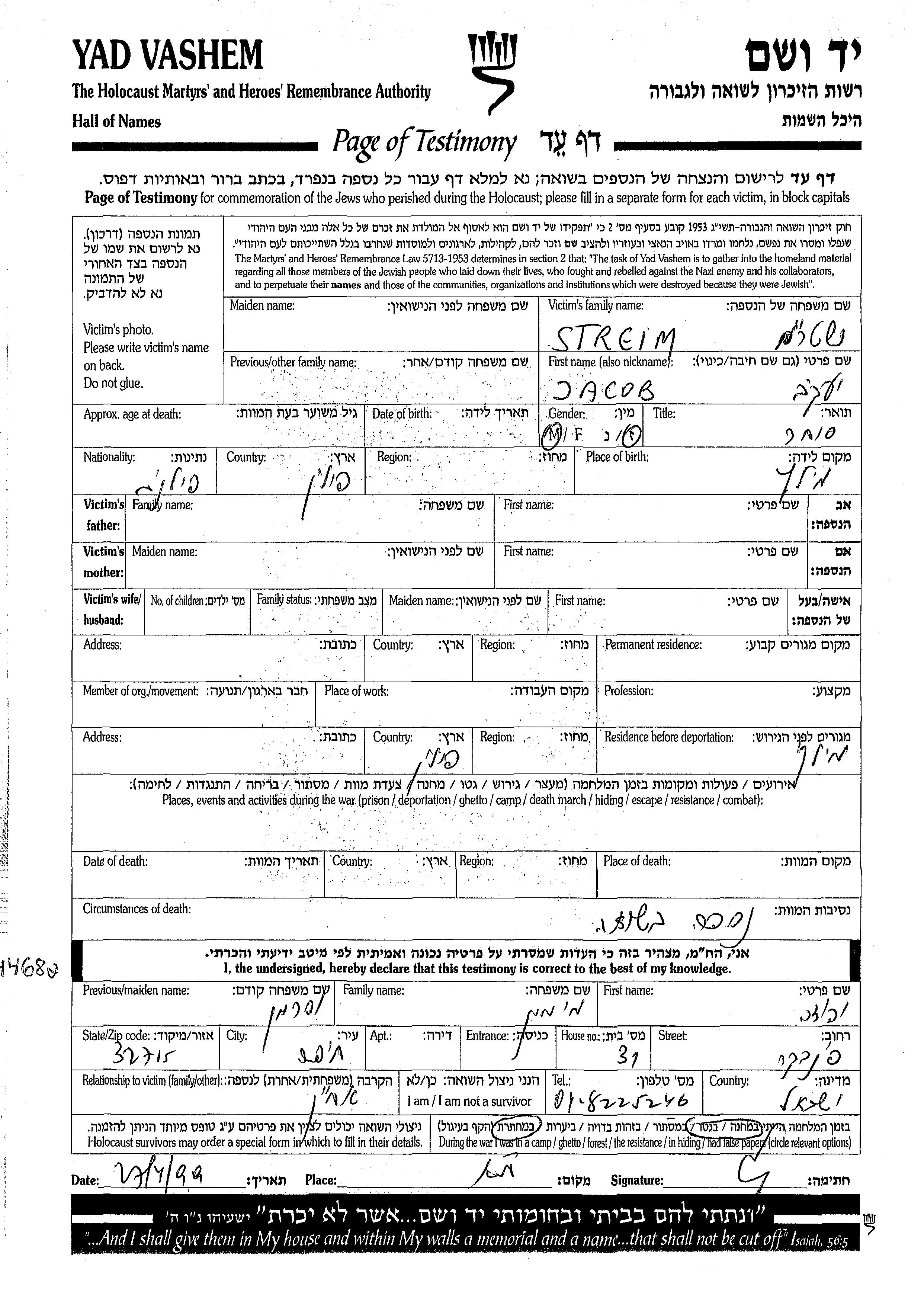 חיפוש שם מוסר דף העד. חיפוש לפי כל שם פרטי, כולל כינוי או שם חיבה