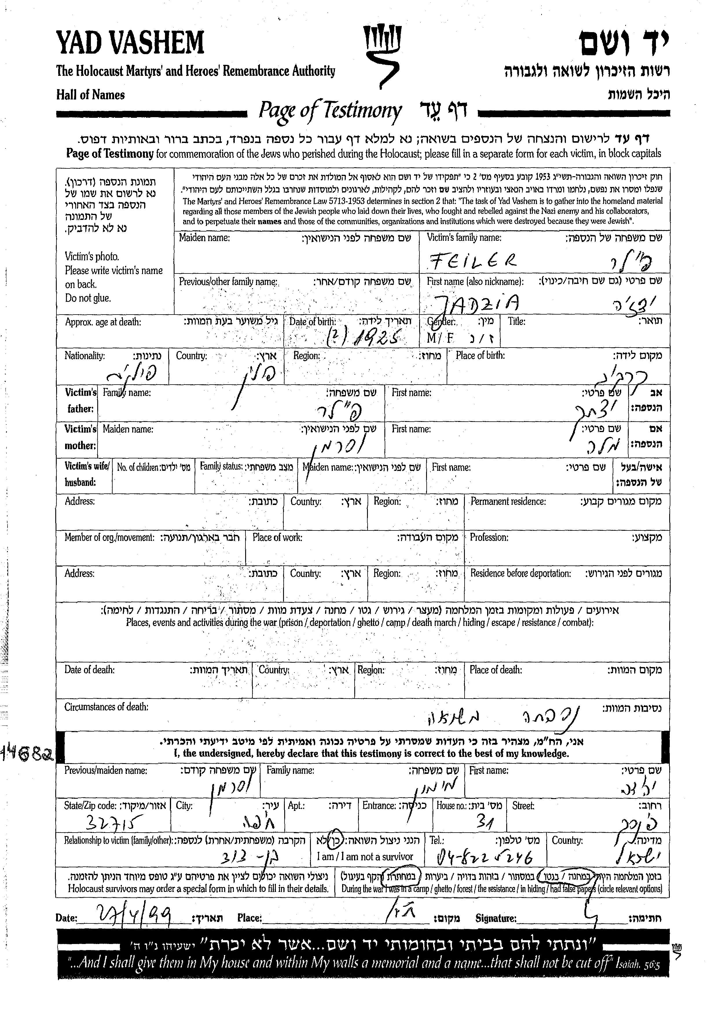 יד ושם - המפעל להנצחת השמות בדפי עד