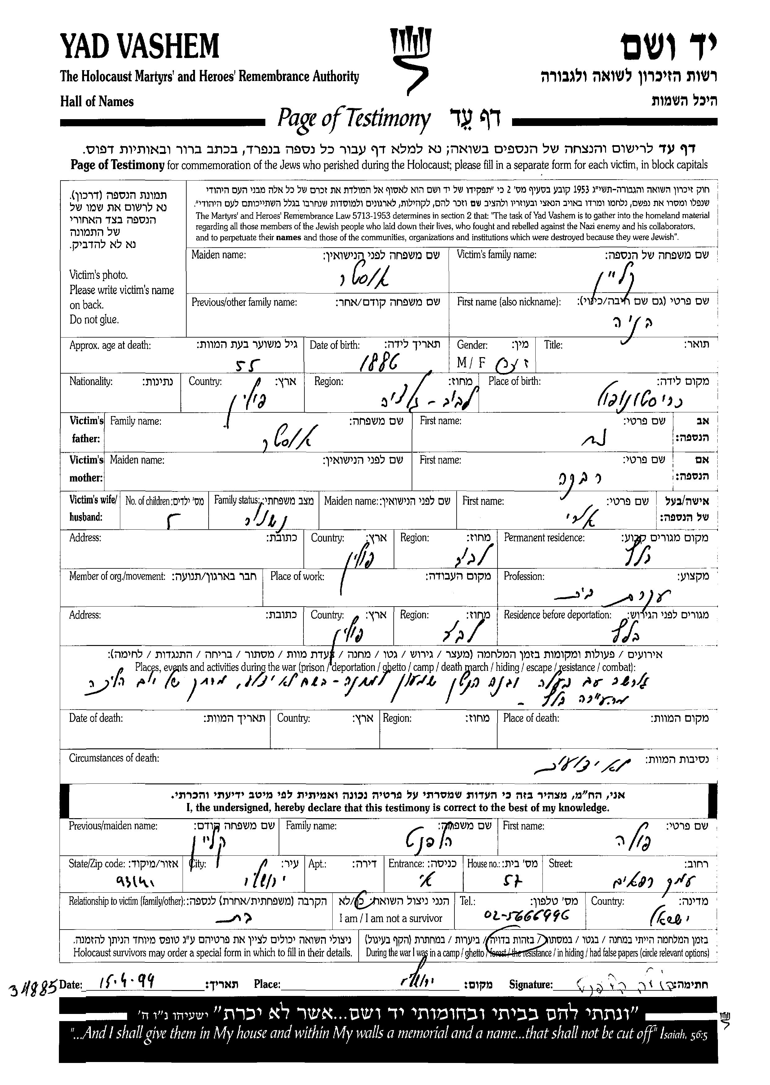 חיפוש שם מוסר דף העד. חיפוש לפי כל שם פרטי, כולל כינוי או שם חיבה