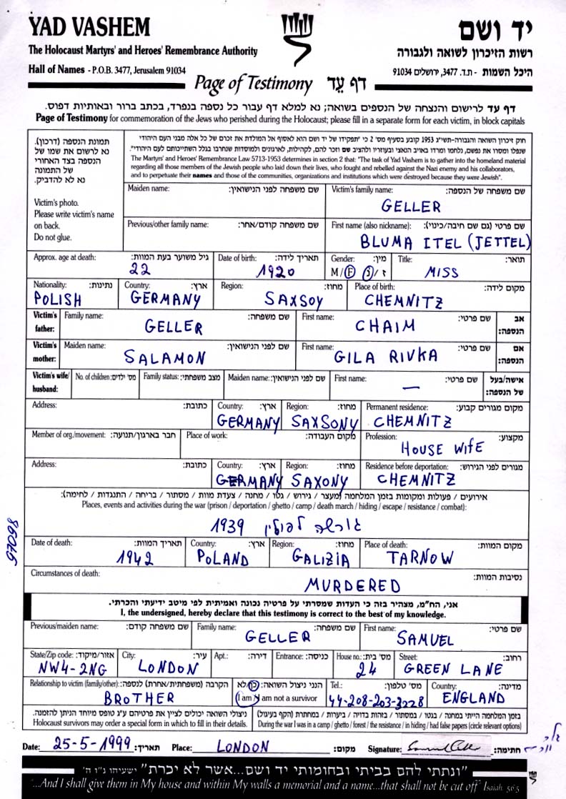 חיפוש שם מוסר דף העד. חיפוש לפי כל שם פרטי, כולל כינוי או שם חיבה