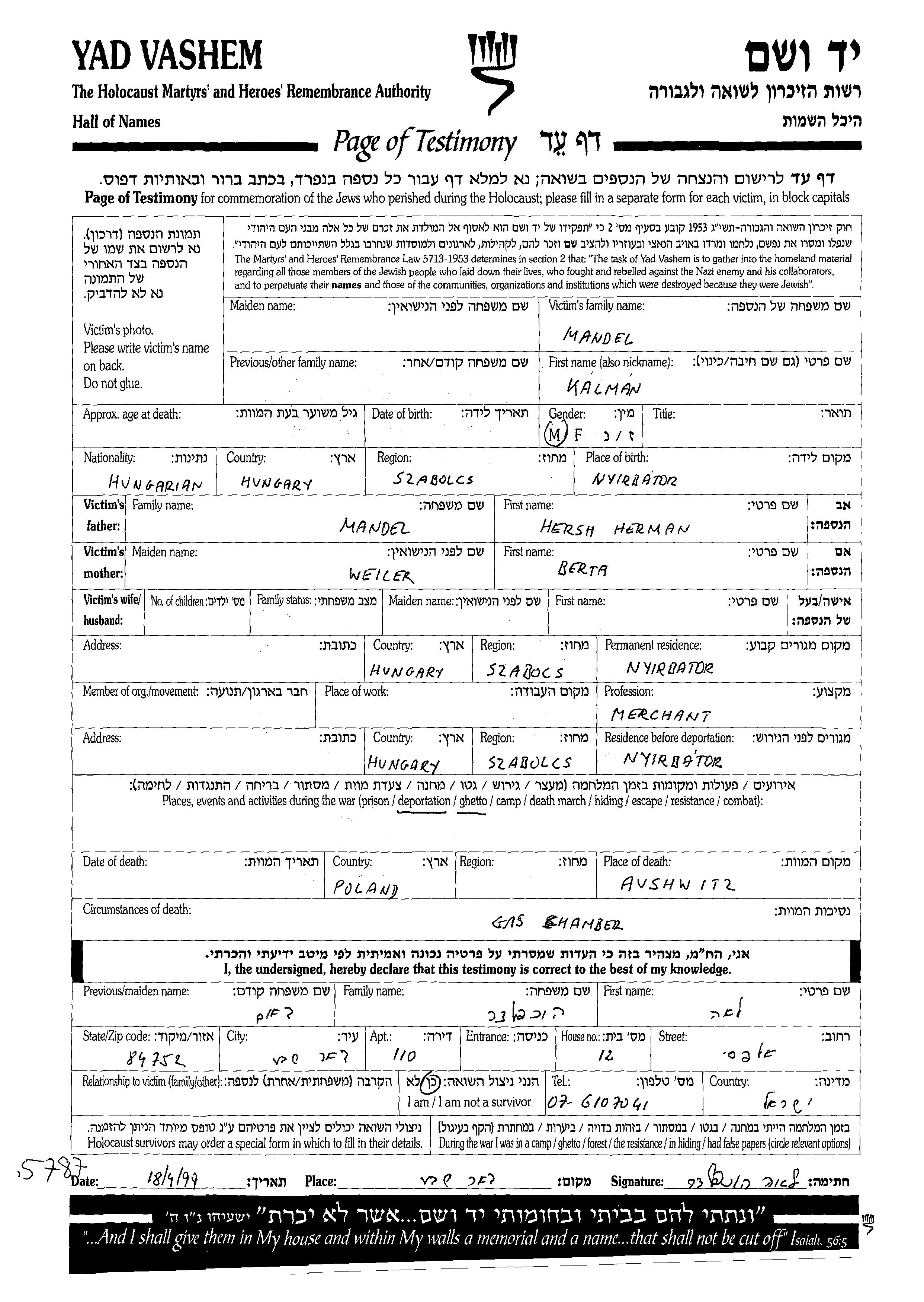 יד ושם - המפעל להנצחת השמות בדפי עד
