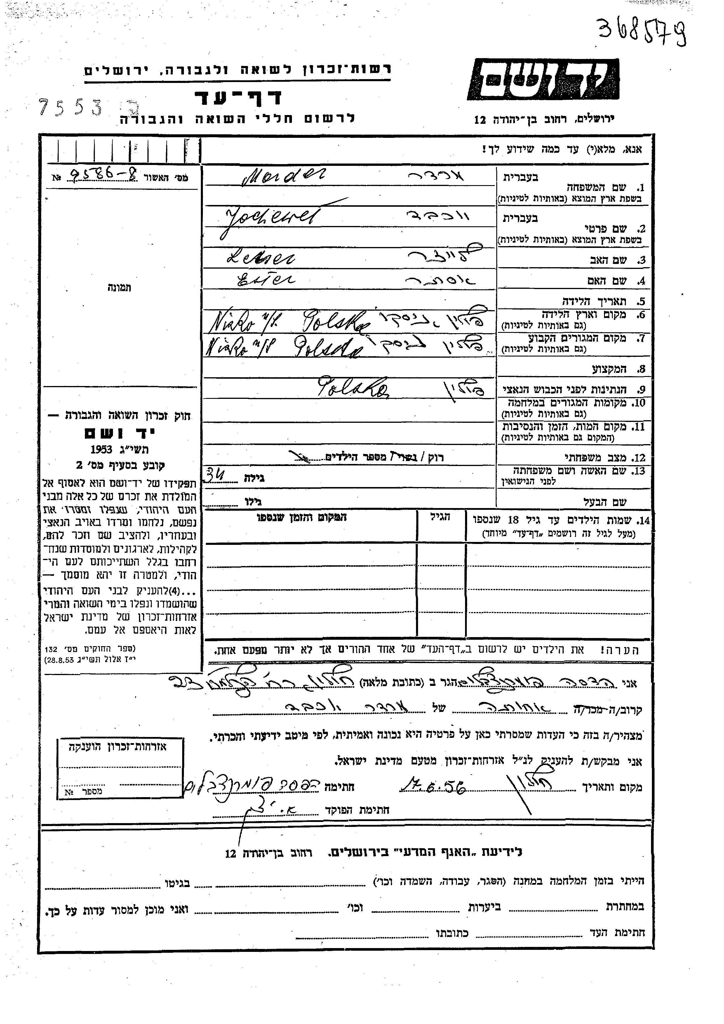 יד ושם - המפעל להנצחת השמות בדפי עד