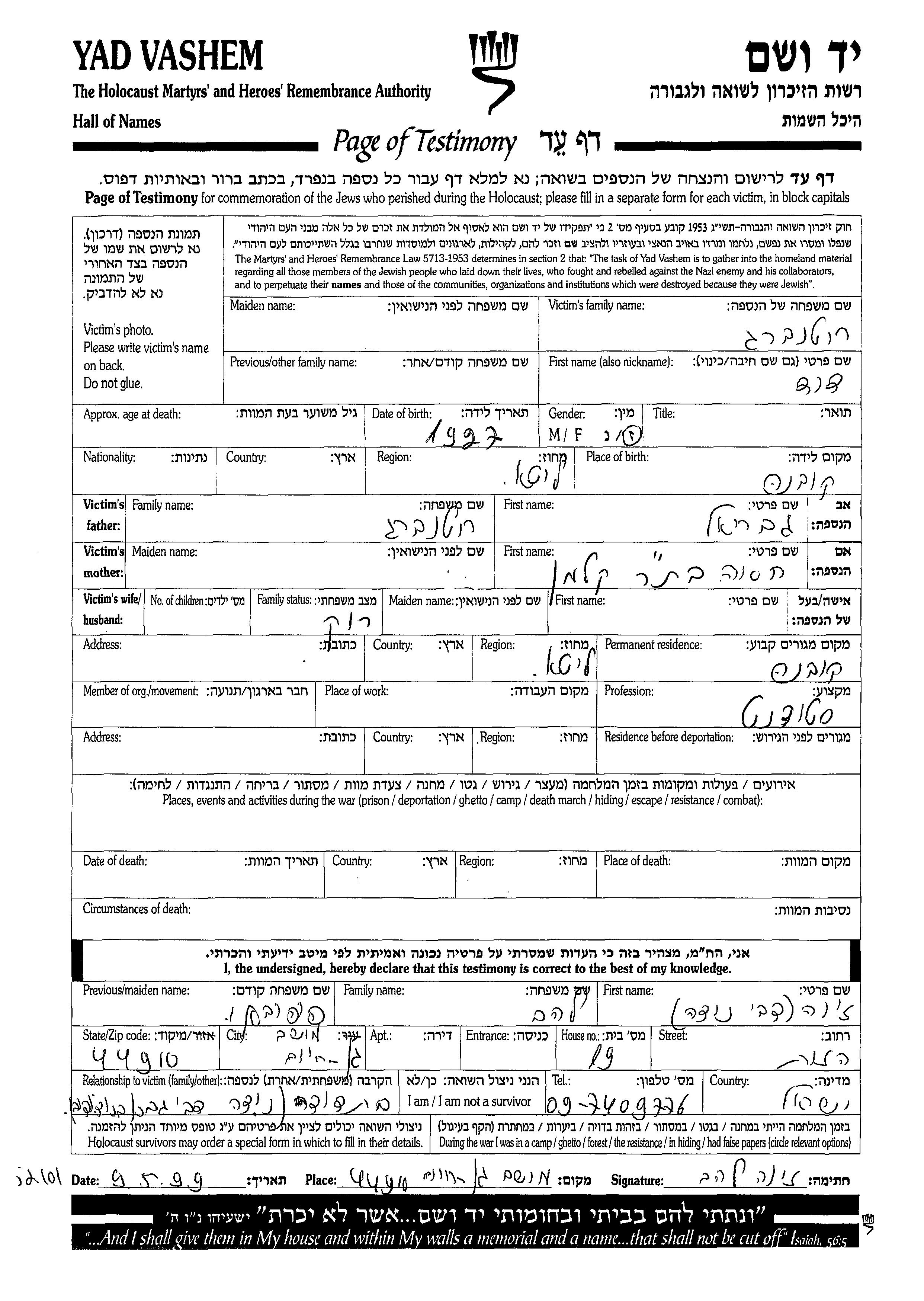 יד ושם - המפעל להנצחת השמות בדפי עד