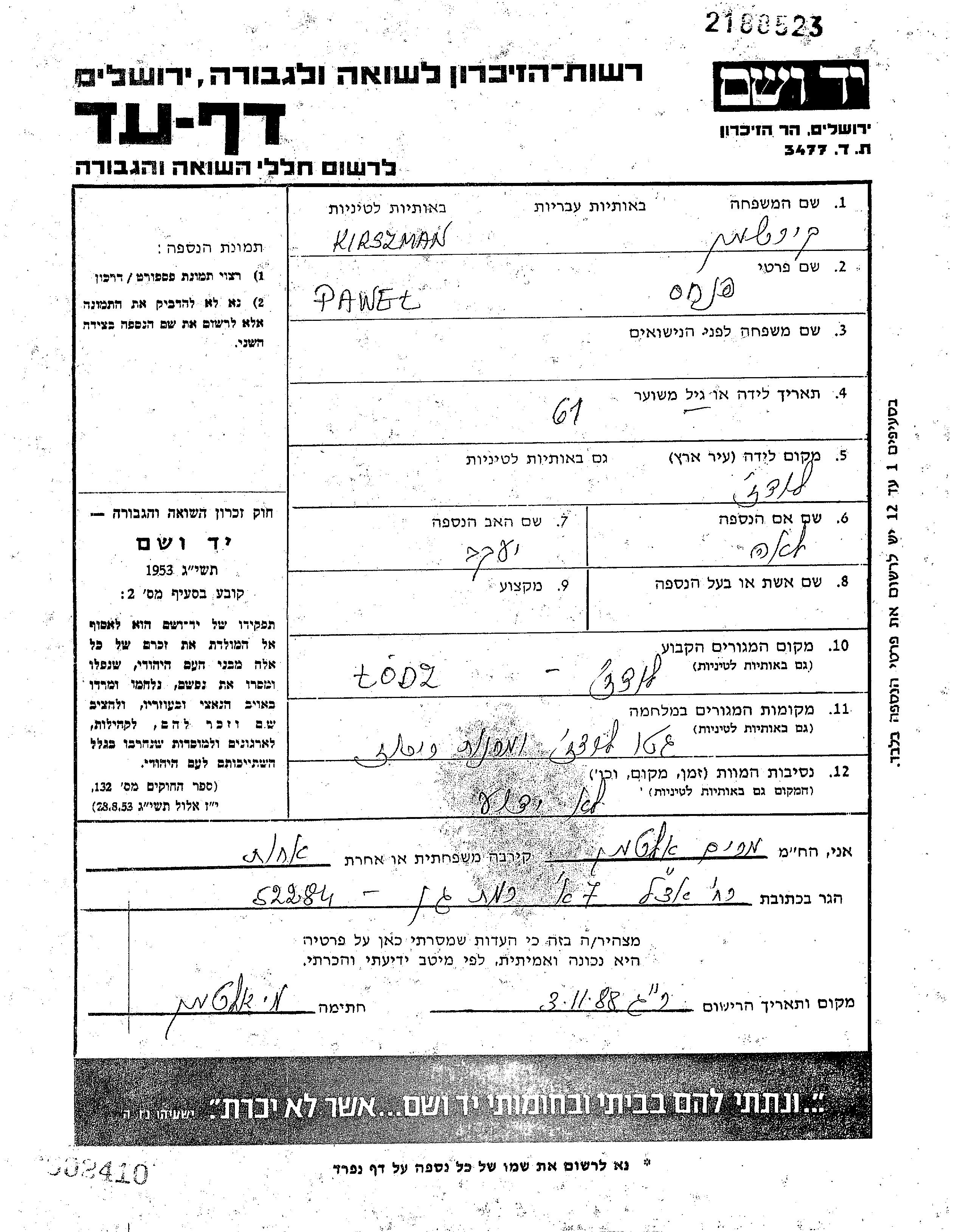 Kirszman Pawel פנחס Lodz, פולין דף-עד