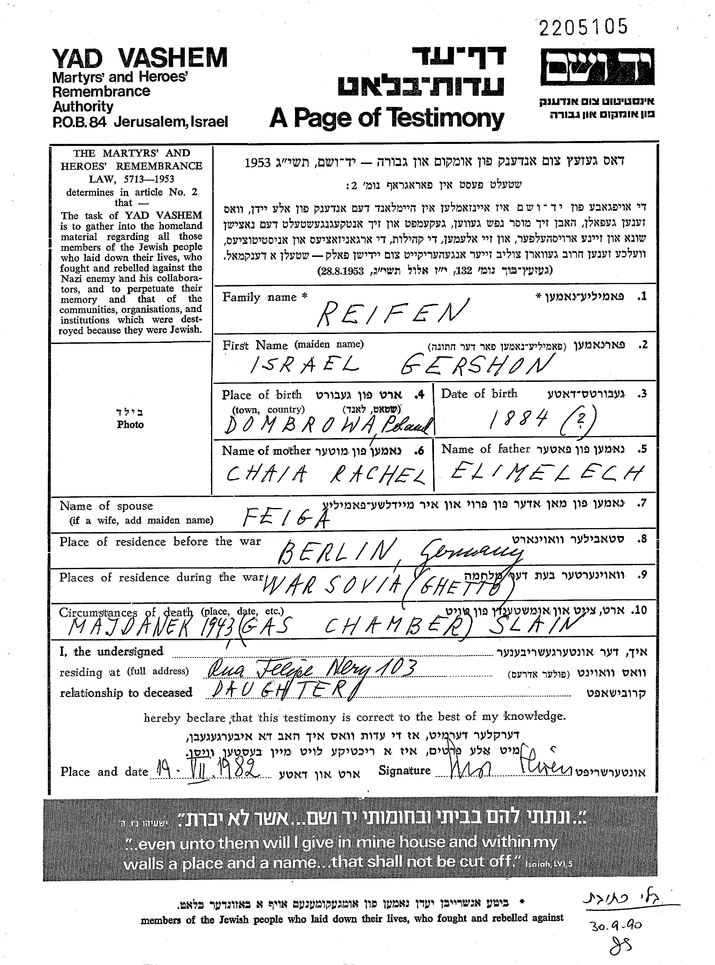 | רייפן | Israel גרשון גאורג | מקום לא רשום, | תעוד-אישי | |