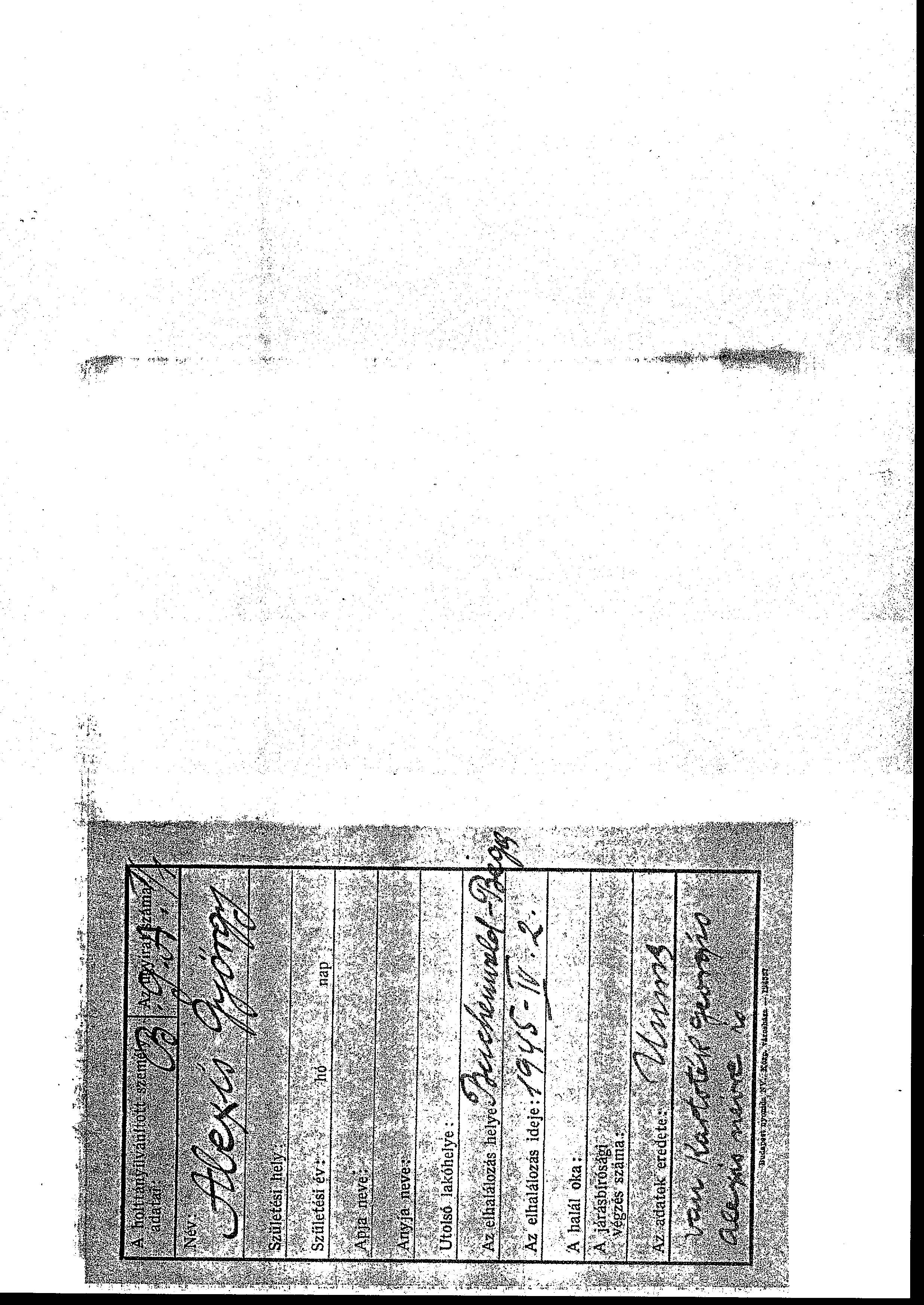 M.34.1 - כרטסת של נספים מפלוגות העבודה ומגורשים מהונגריה