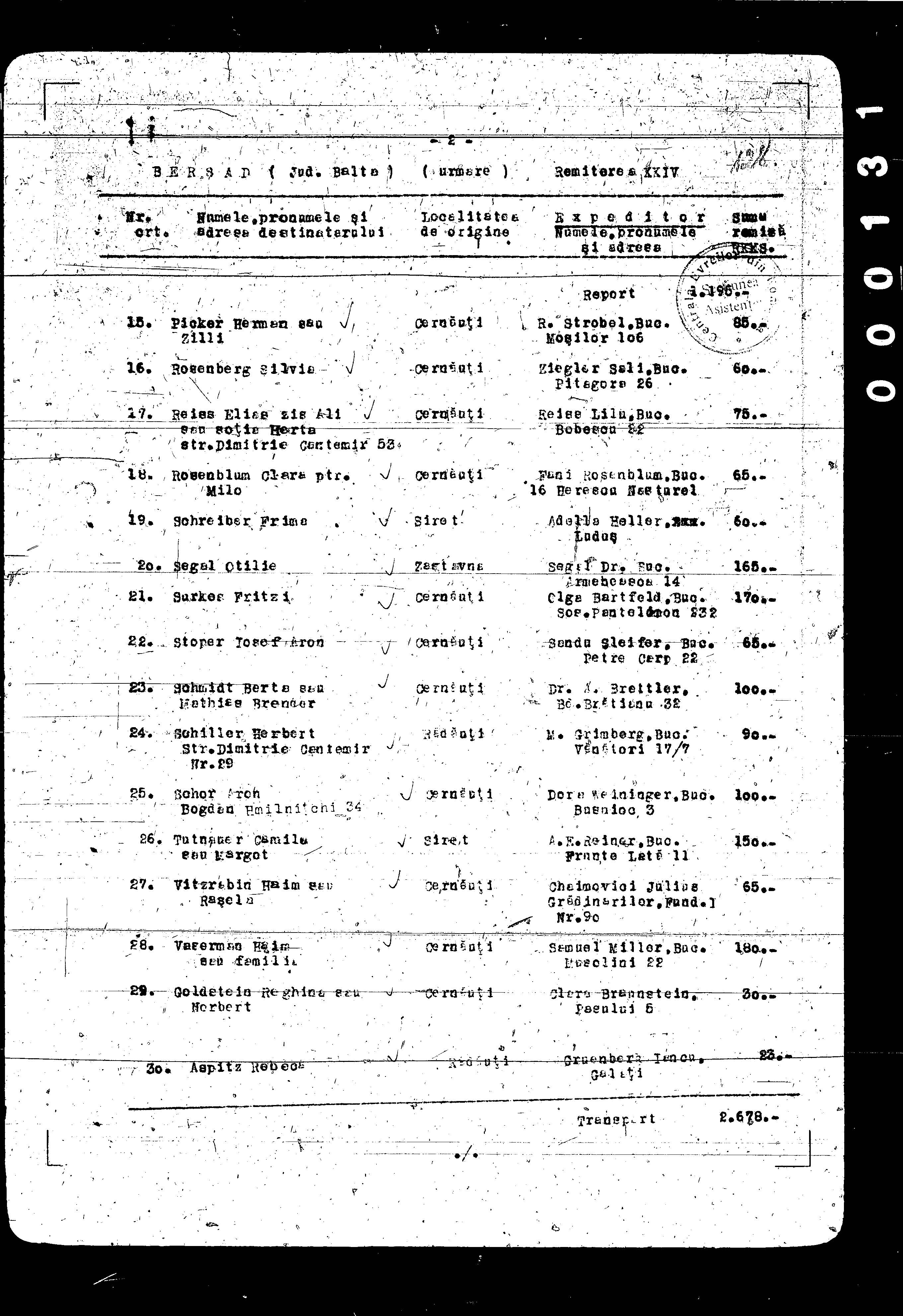 רשימת יהודים מ- Romania שגורשו ל- Bersad מ- 10/11/1942