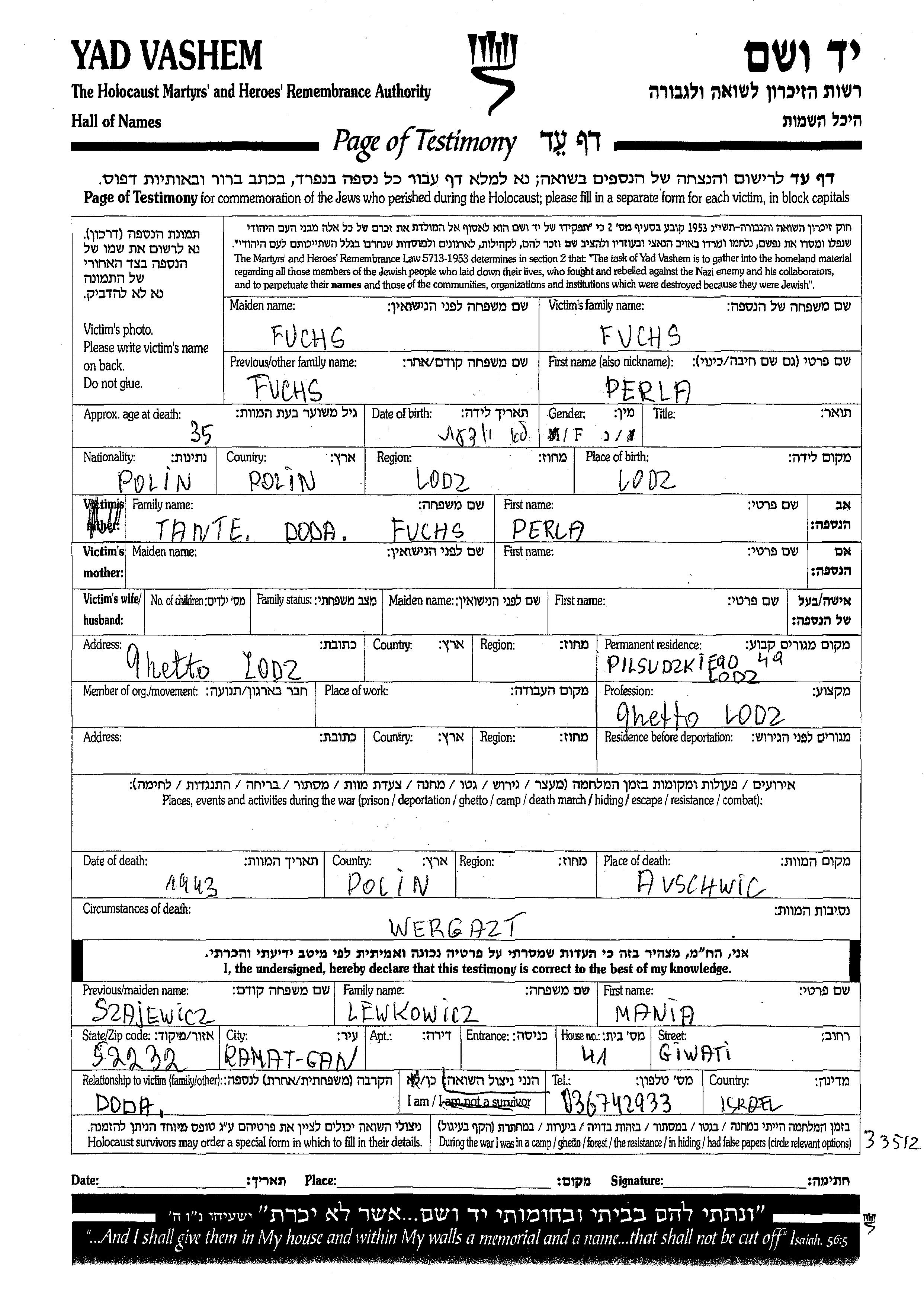 יד ושם - המפעל להנצחת השמות בדפי עד