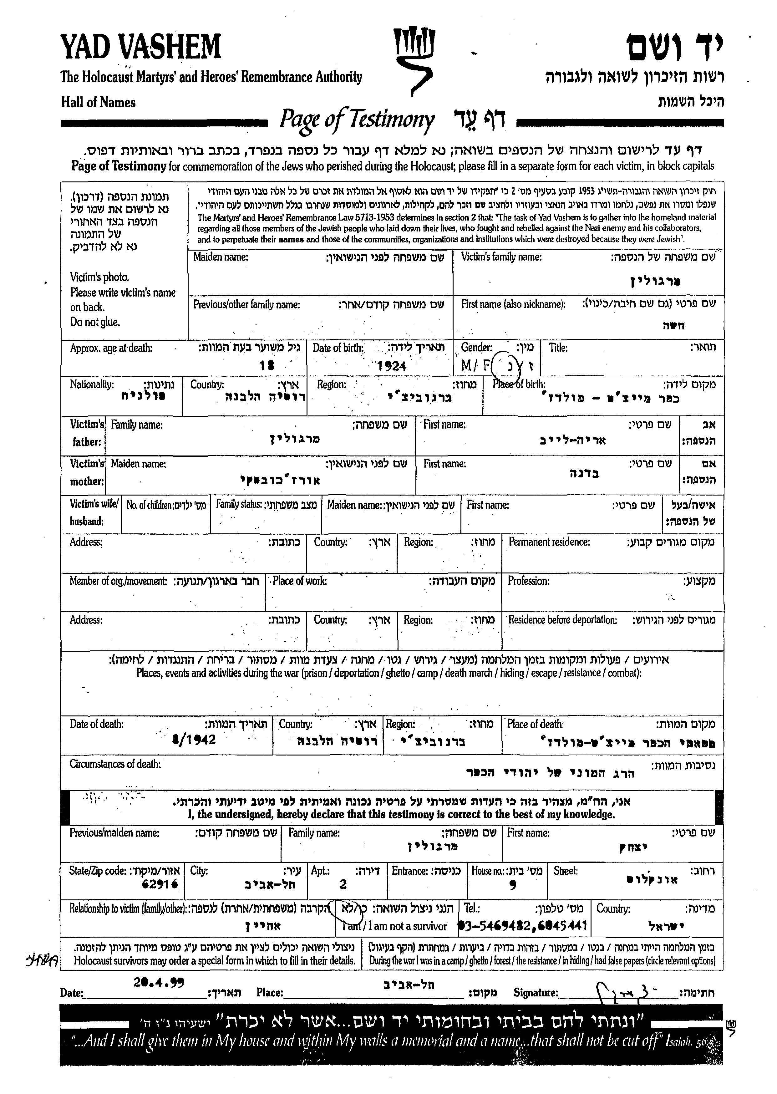 חיפוש שם מוסר דף העד. חיפוש לפי כל שם פרטי, כולל כינוי או שם חיבה
