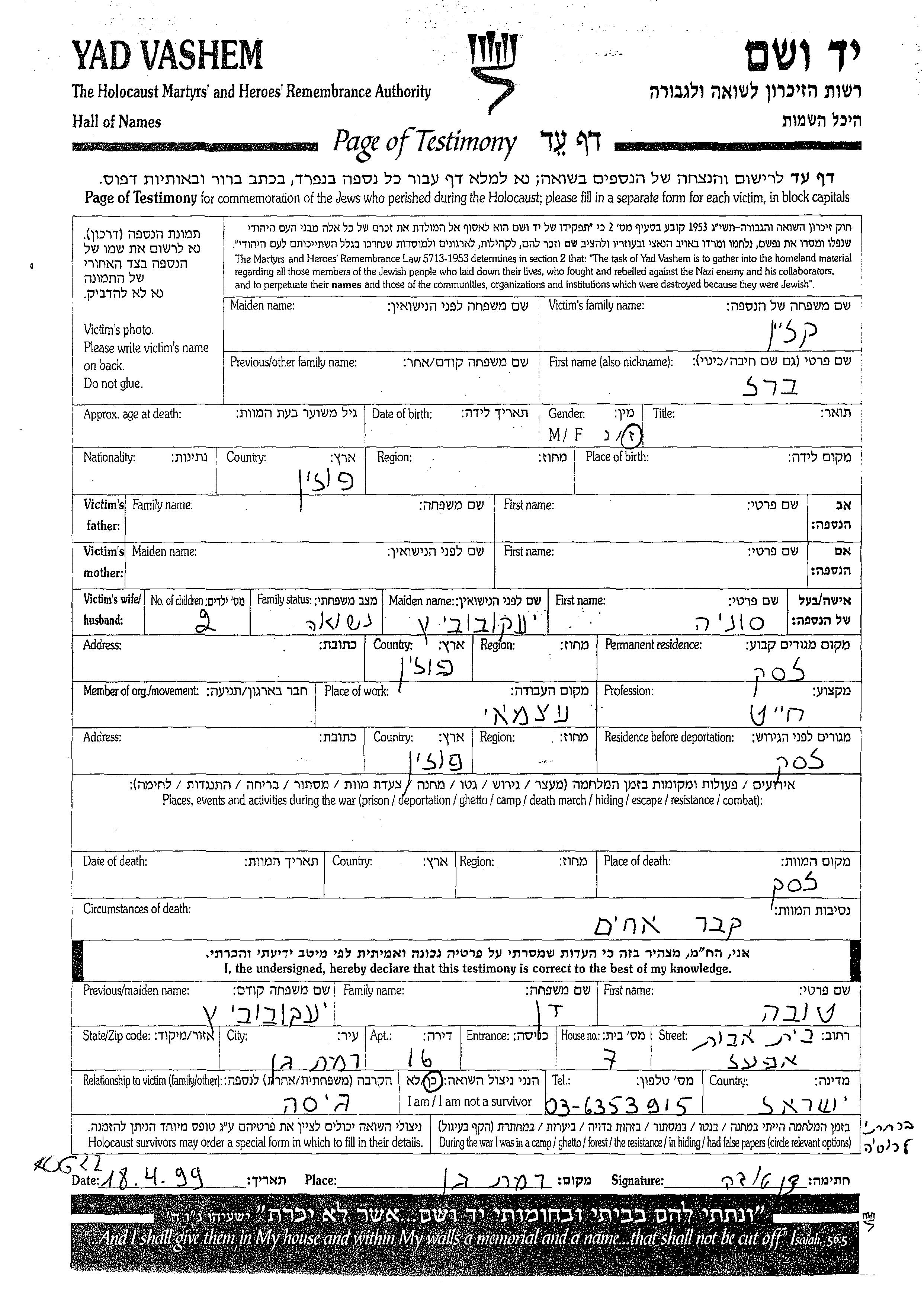 יד ושם - המפעל להנצחת השמות בדפי עד