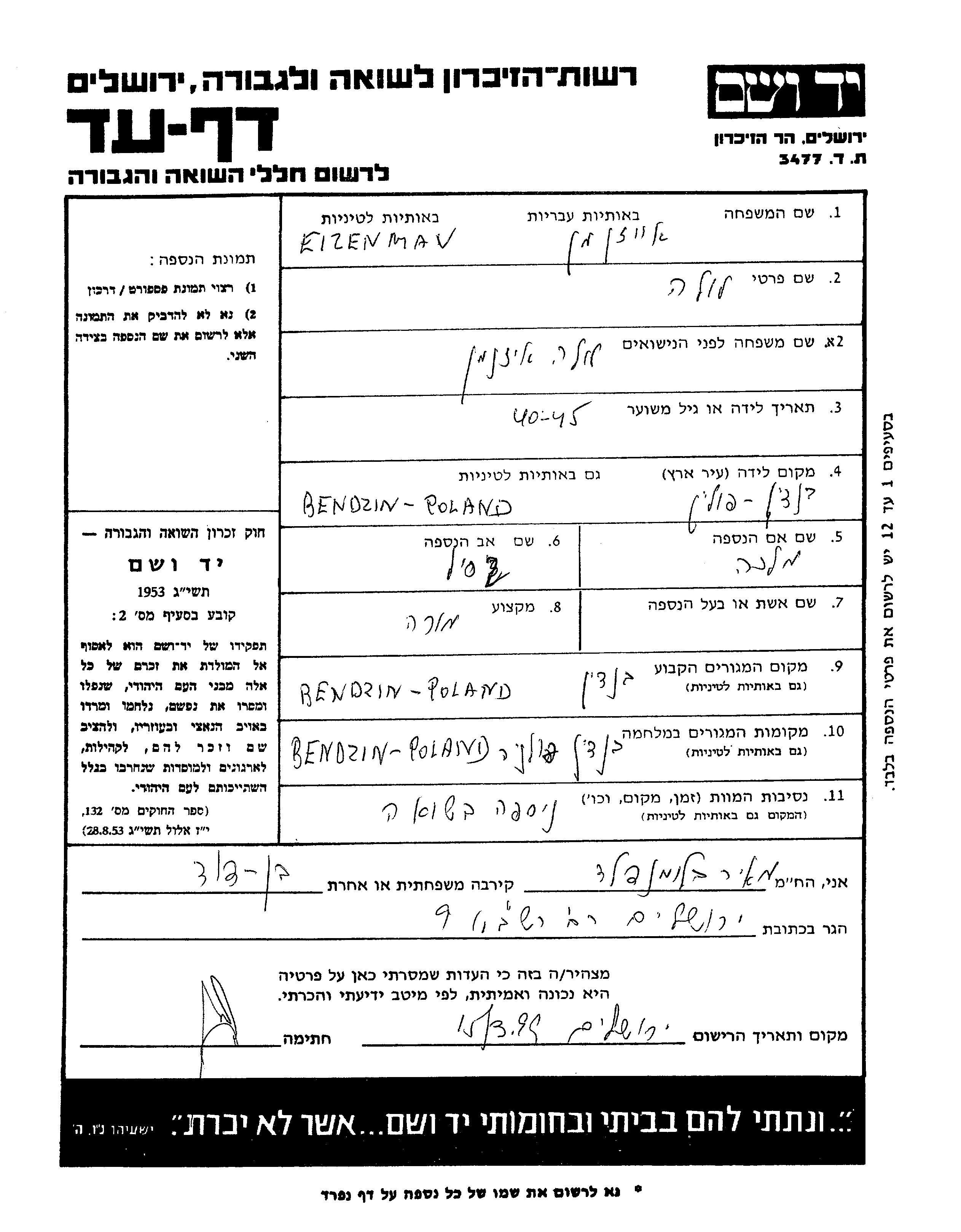יד ושם - המפעל להנצחת השמות בדפי עד