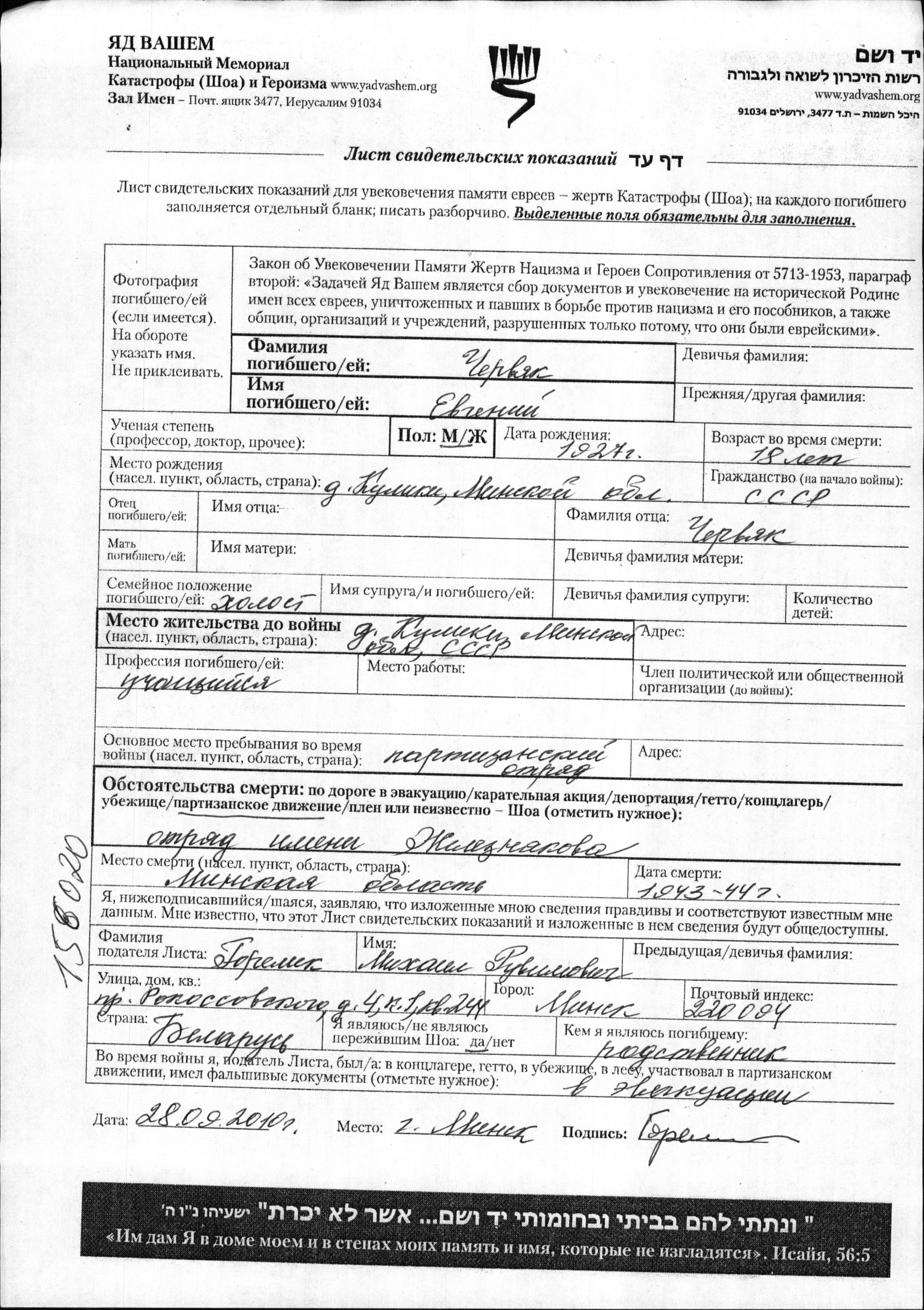 חיפוש שם מוסר דף העד. חיפוש לפי כל שם פרטי, כולל כינוי או שם חיבה
