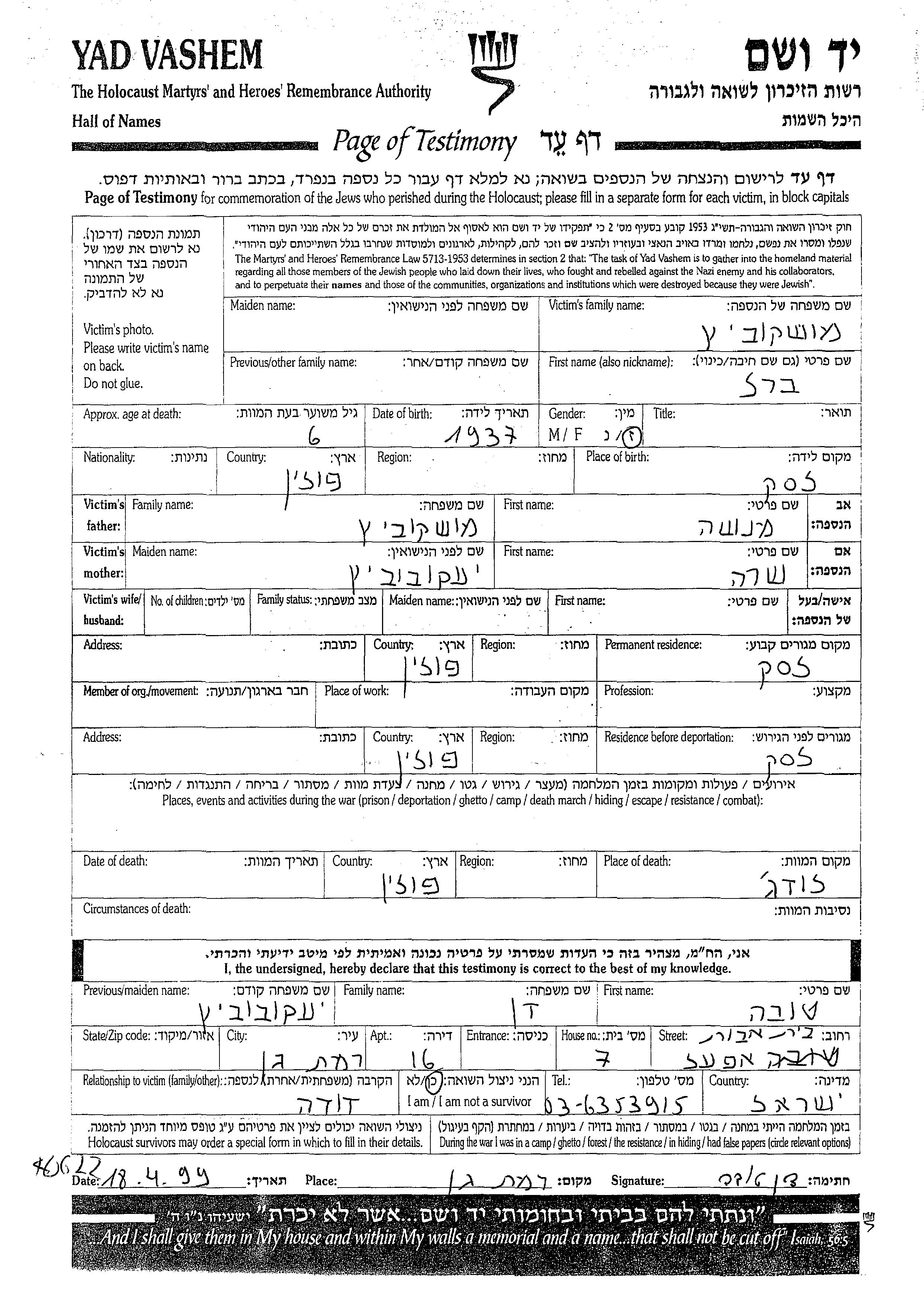יד ושם - המפעל להנצחת השמות בדפי עד