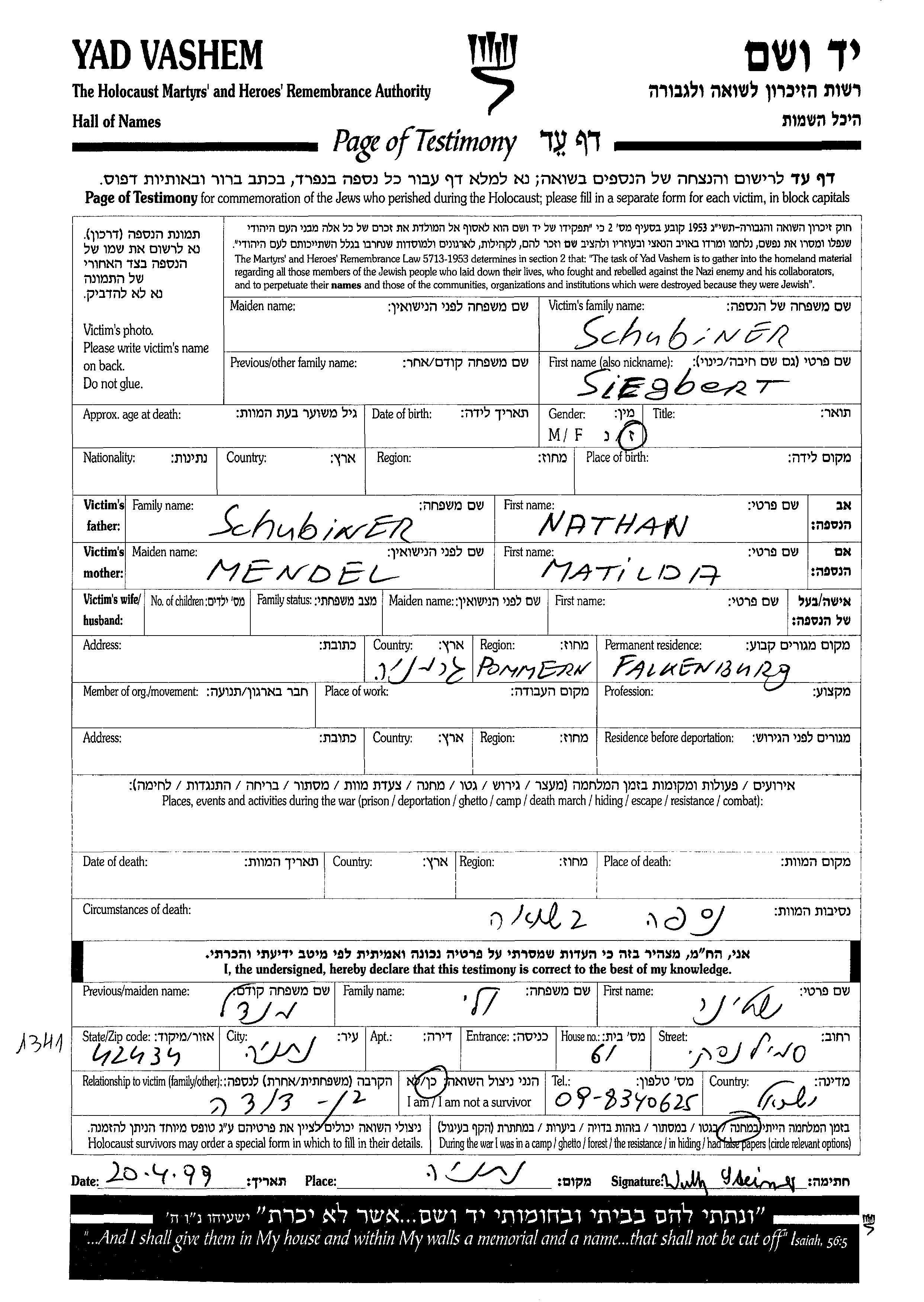 יד ושם - המפעל להנצחת השמות בדפי עד