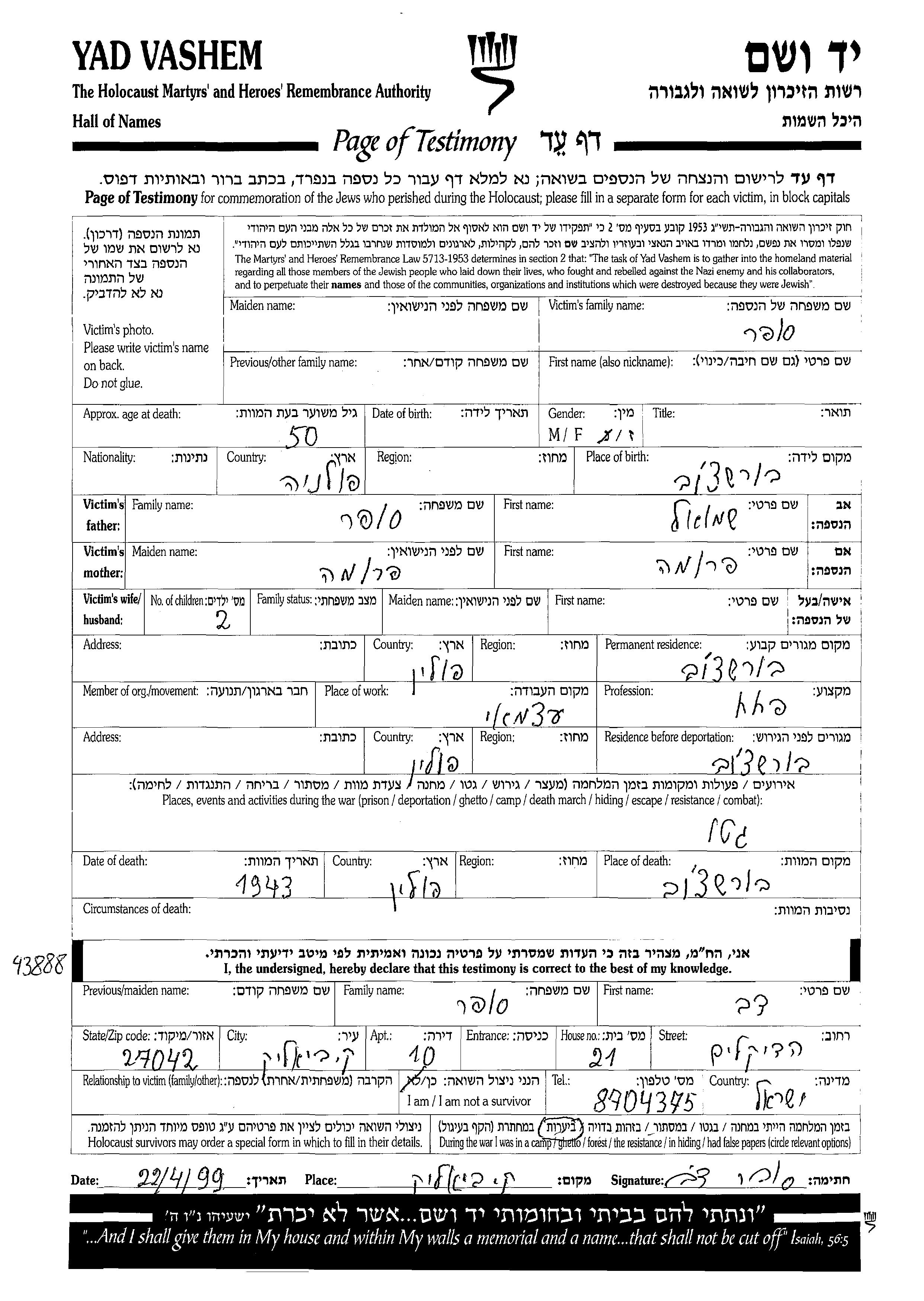 יד ושם - המפעל להנצחת השמות בדפי עד
