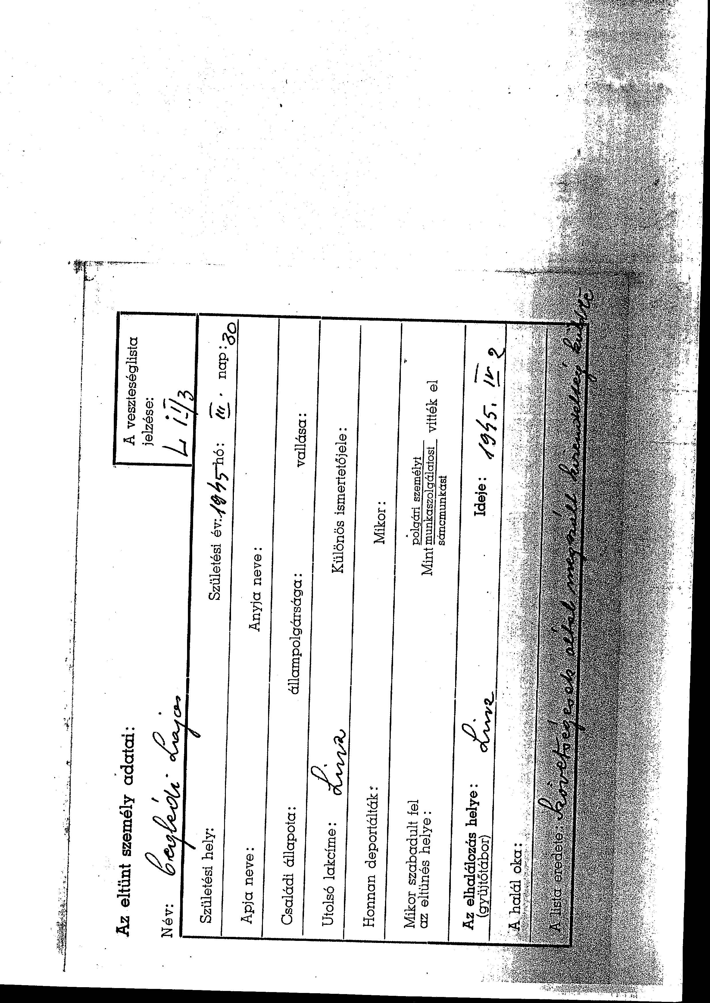 M.34.1 - כרטסת של נספים מפלוגות העבודה ומגורשים מהונגריה