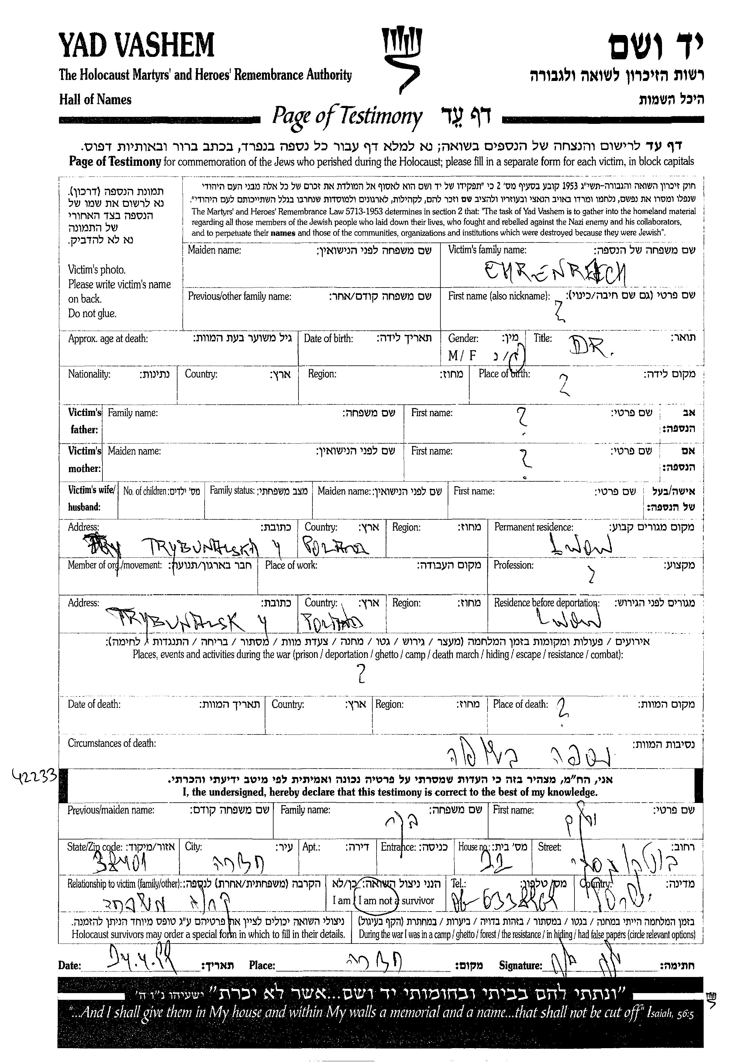 יד ושם - המפעל להנצחת השמות בדפי עד