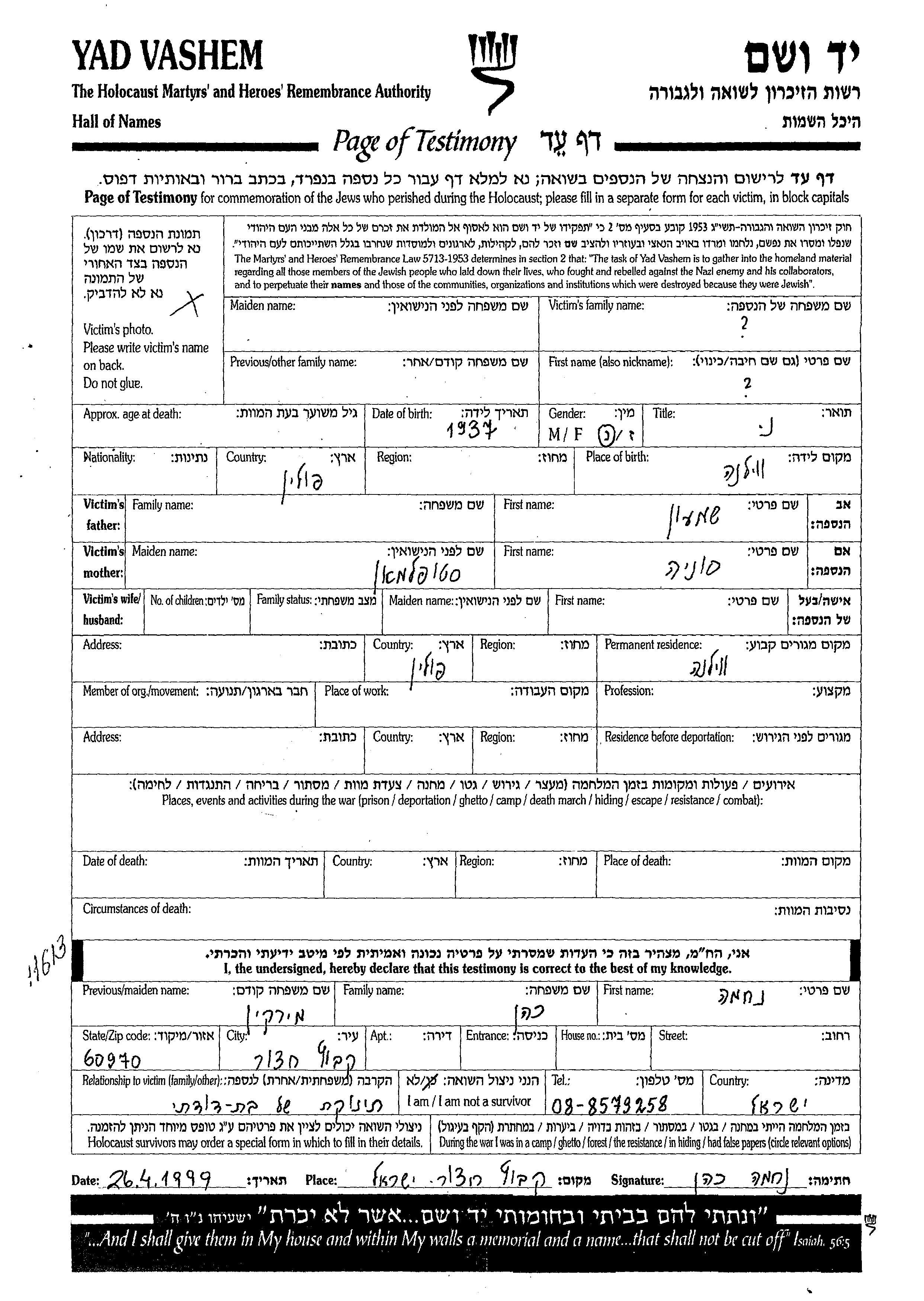 יד ושם - המפעל להנצחת השמות בדפי עד