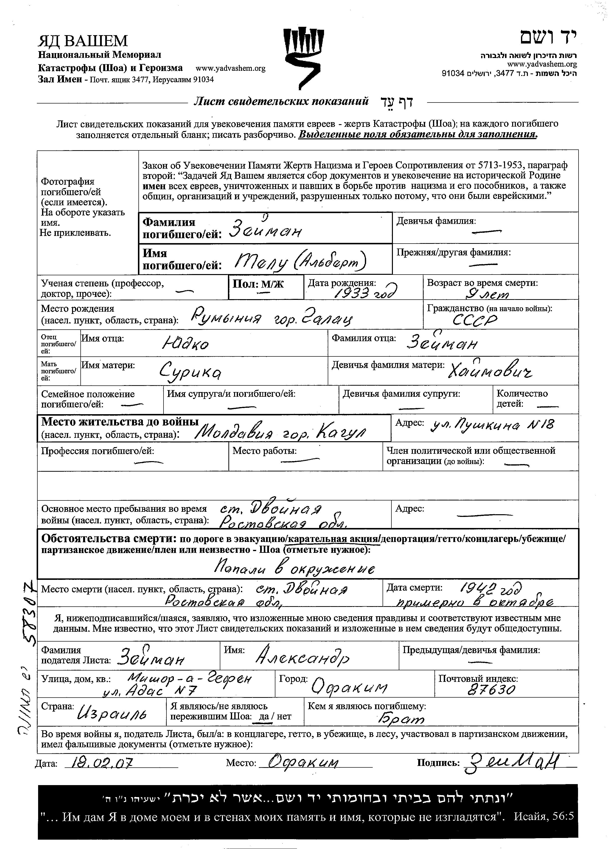 זיימן זימן אלברט יואל מקום לא רשום, דף-עד