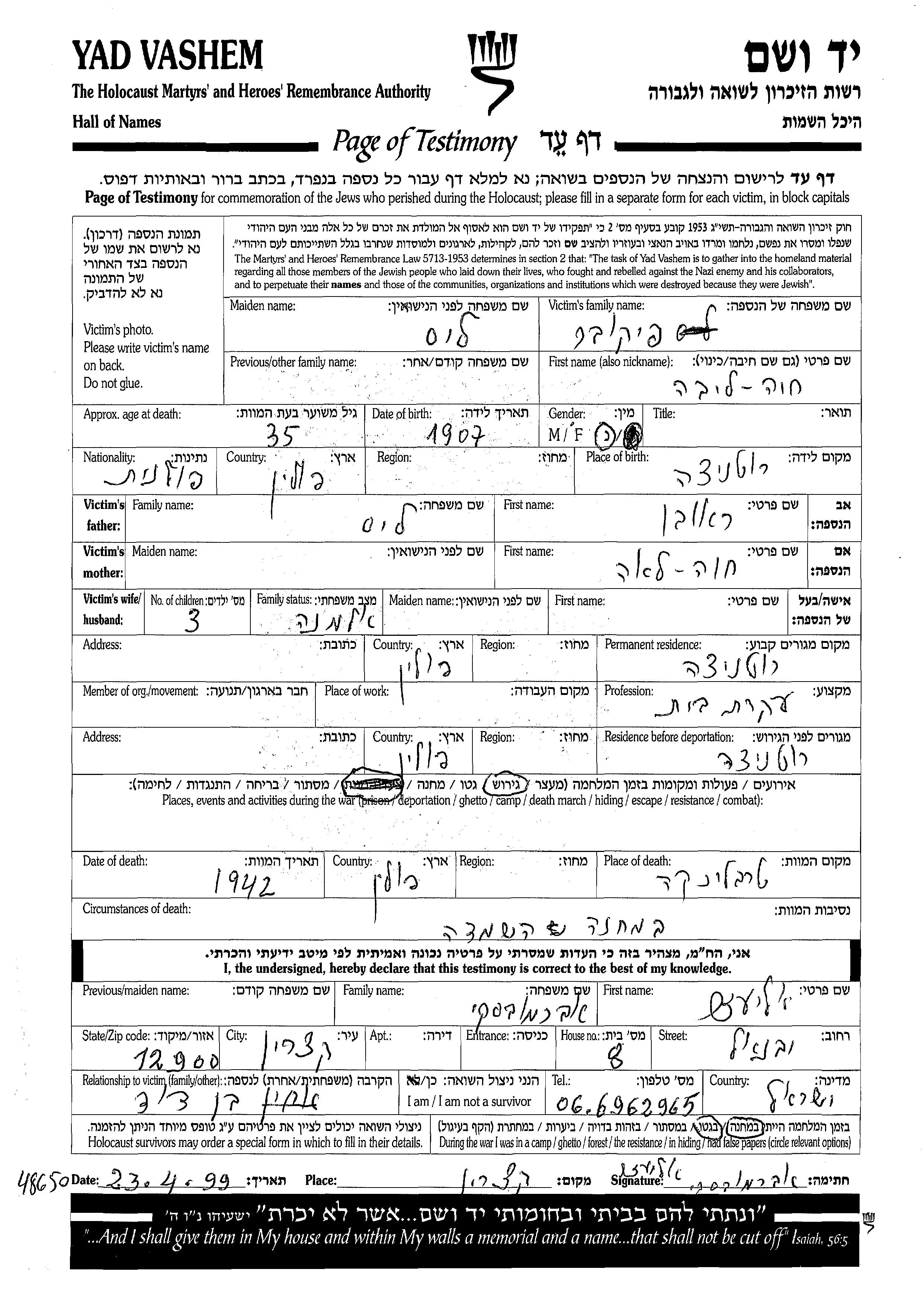 יד ושם - המפעל להנצחת השמות בדפי עד