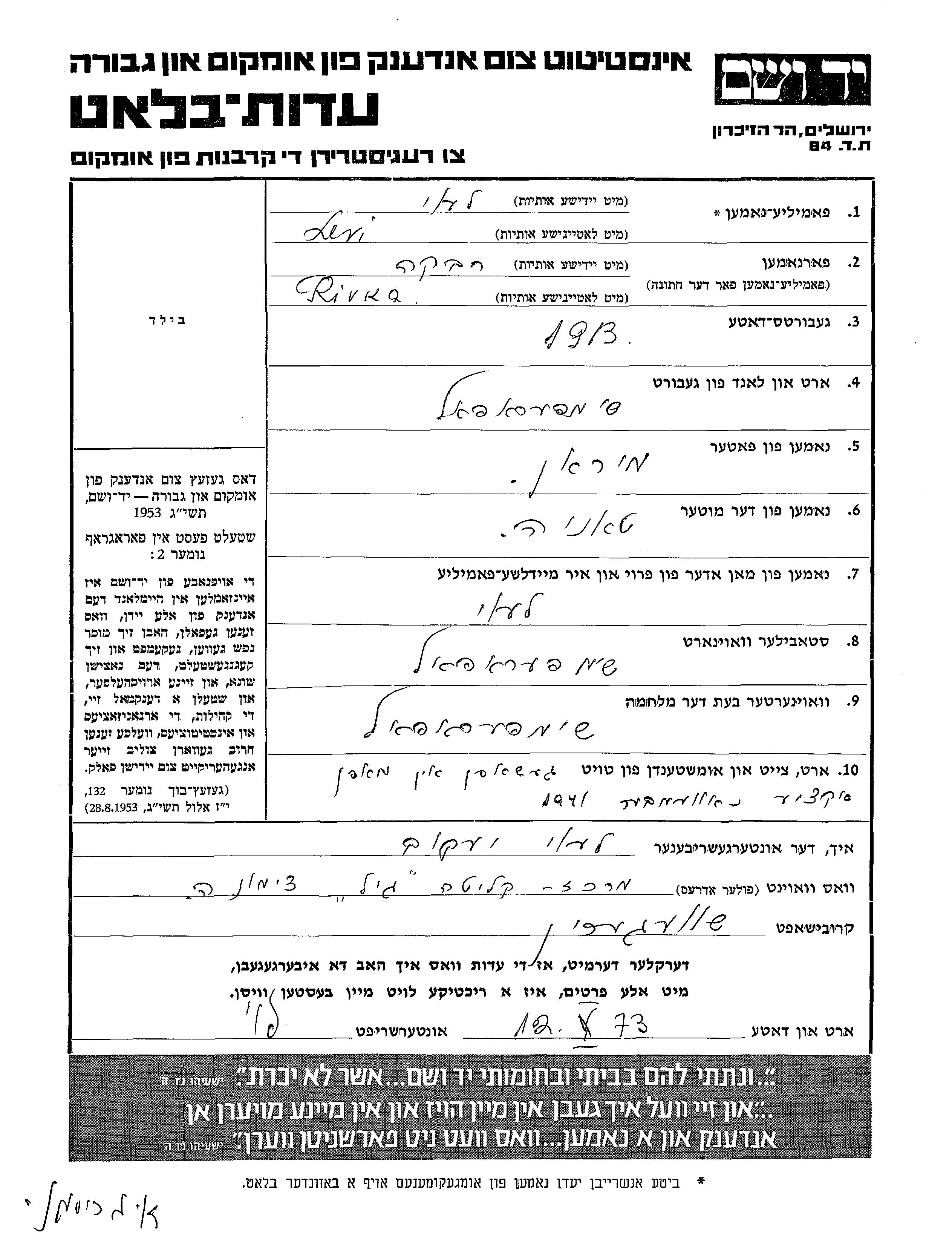 רבקה לעוי נולדה בSimferopol שברוסיה (ברה"מ) בשנת 1913 למיראן וטאניה. לפני מלחמת העולם השניה התגוררה בSimferopol שברוסיה (ברה"מ). בזמן המלחמה היא היתה בSimferopol שברוסיה (ברה"מ). רבקה נרצחה בשואה. מקום המוות: Simferopol שברוסיה (ברה"מ) בשנת 11/1941.