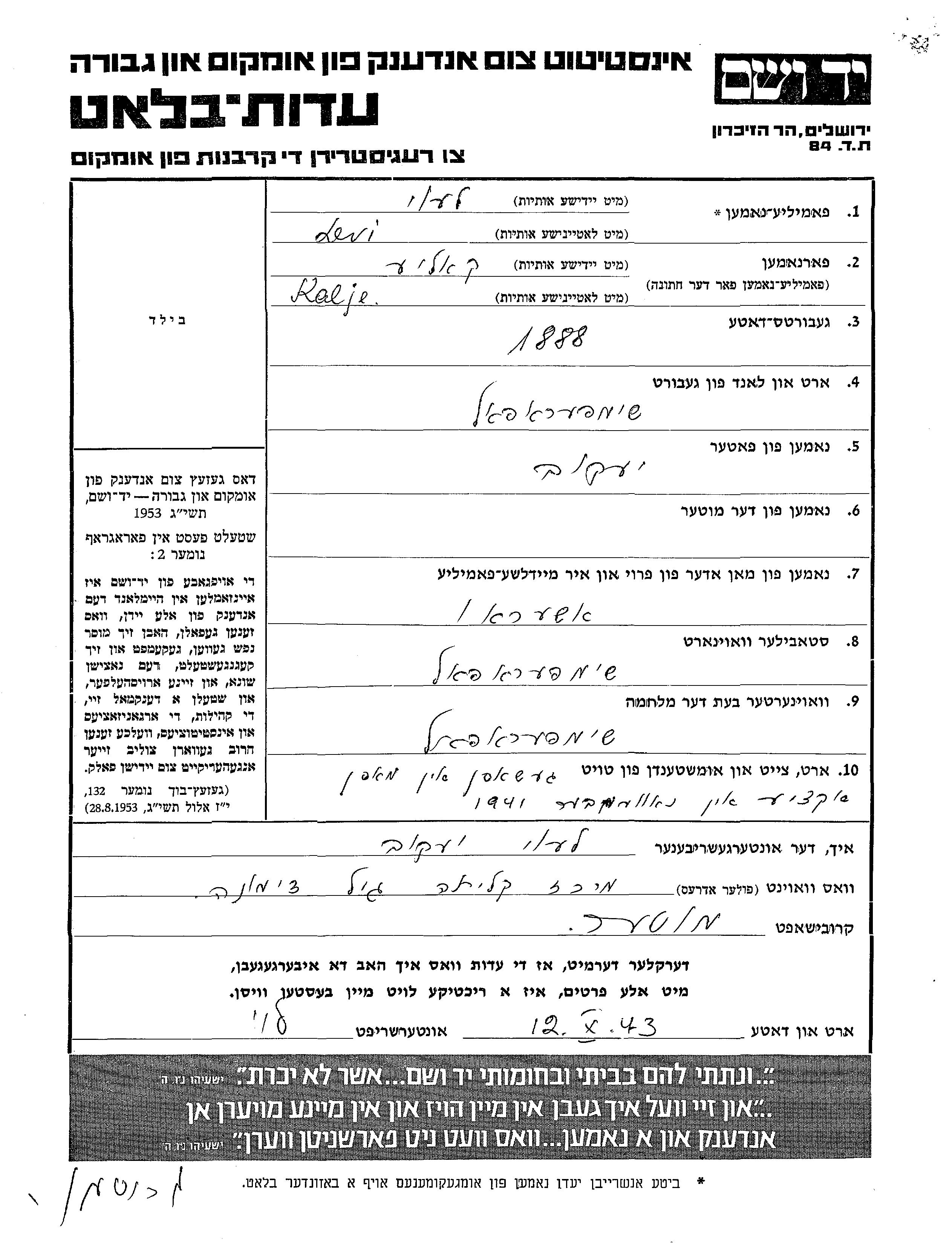 יד ושם - המפעל להנצחת השמות בדפי עד