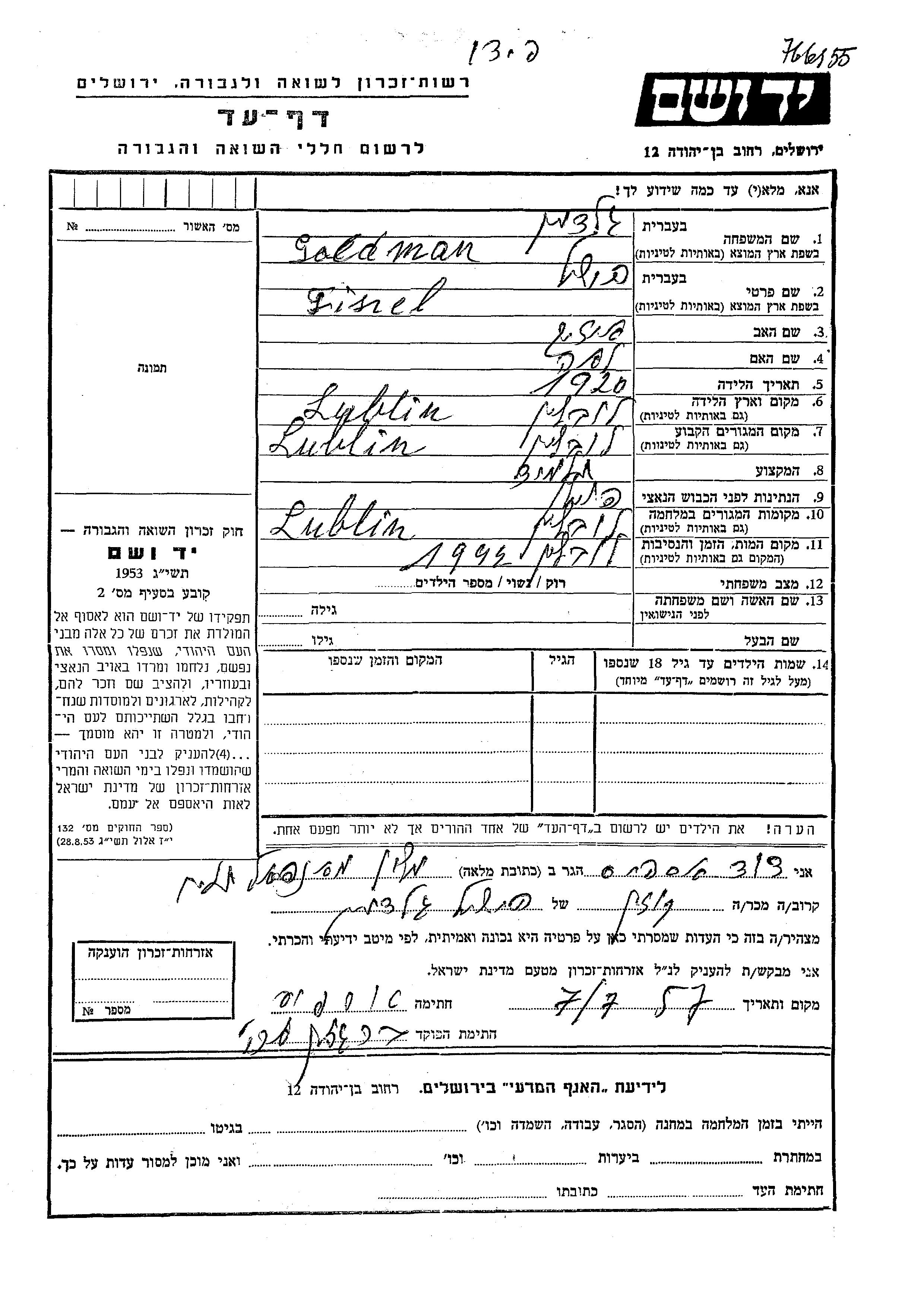 גולדמן גלדמן Fiszel 1920 Lublin, פולין דף-עד