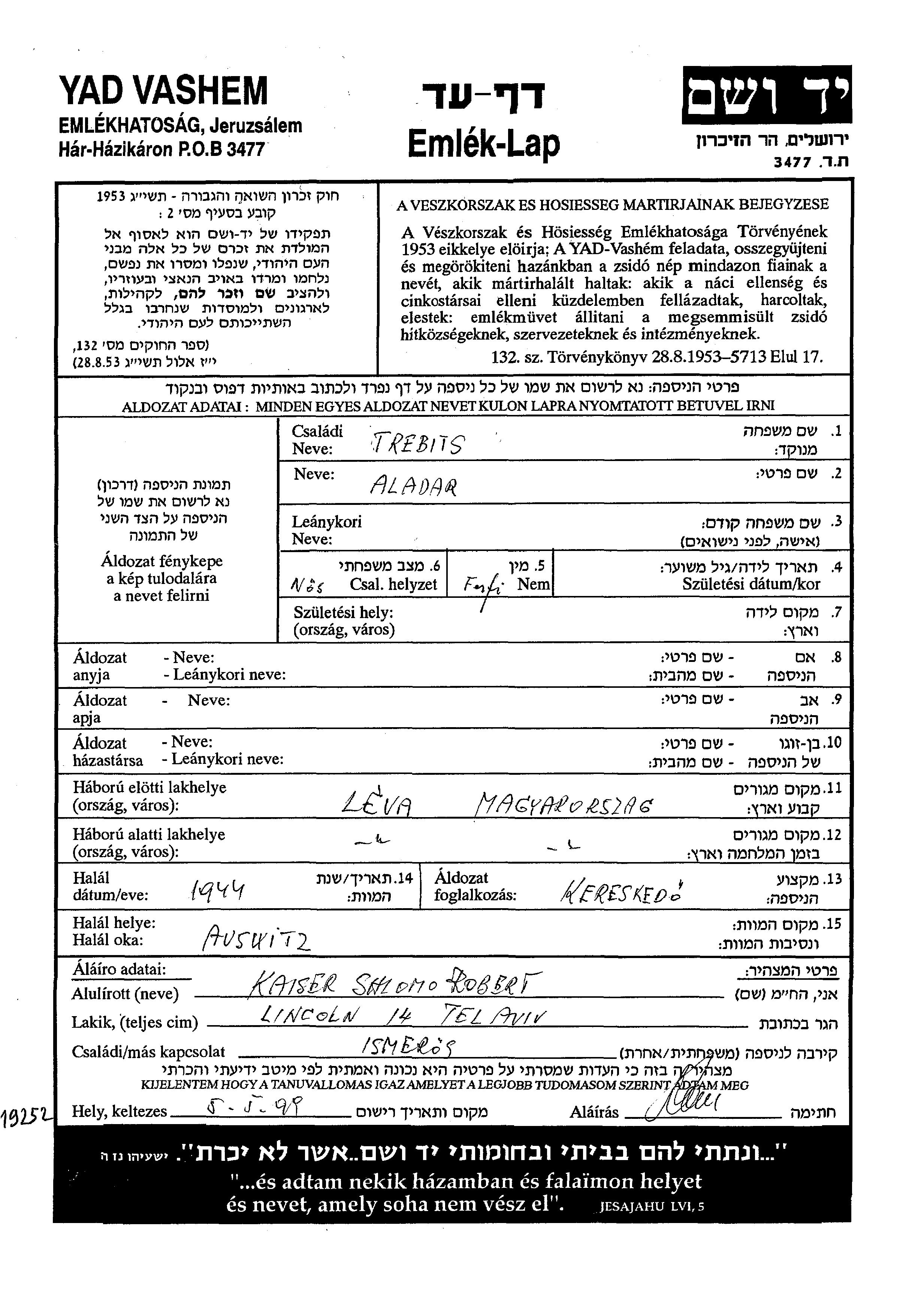 חיפוש שם מוסר דף העד. חיפוש לפי כל שם פרטי, כולל כינוי או שם חיבה