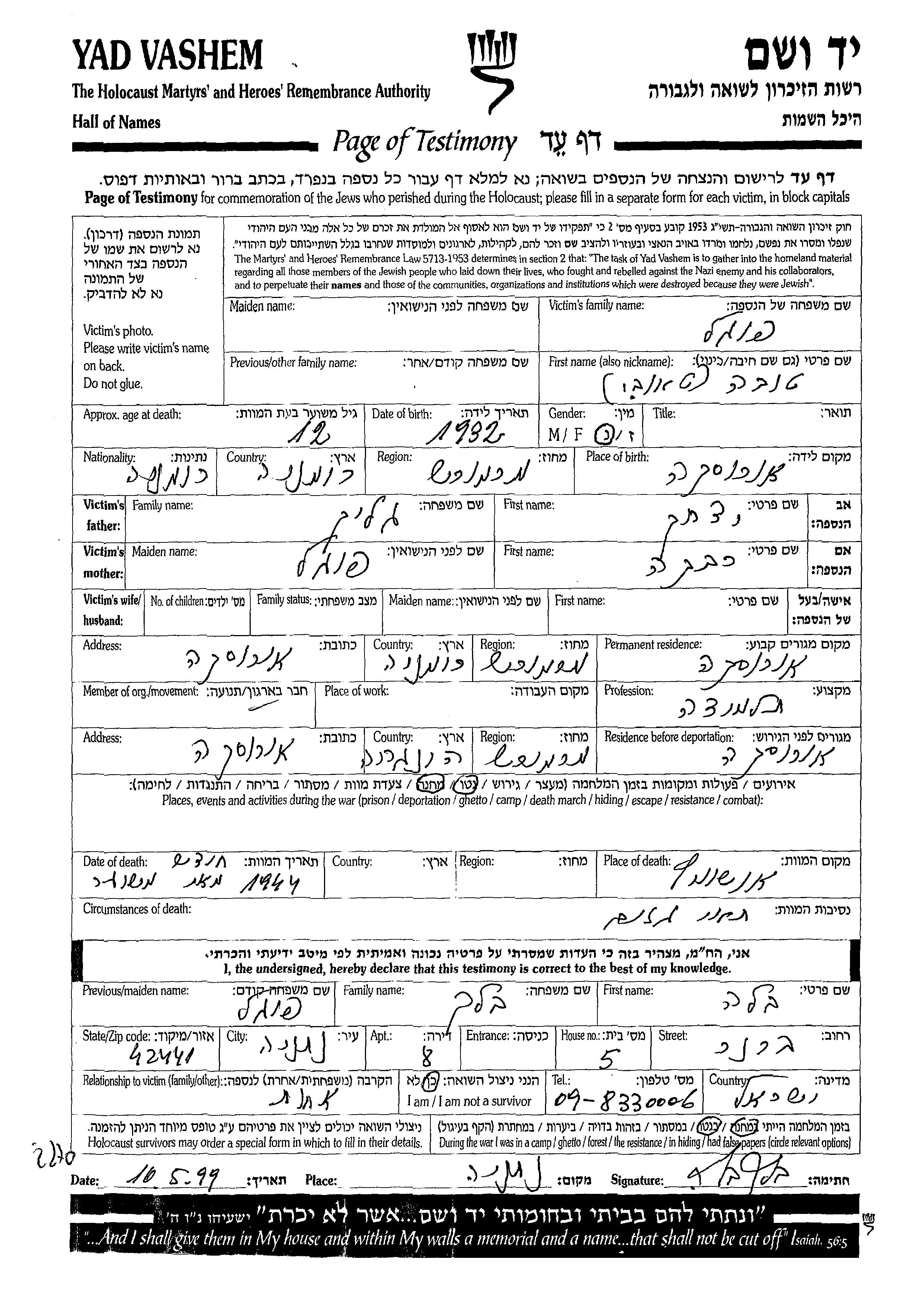 יד ושם - המפעל להנצחת השמות בדפי עד