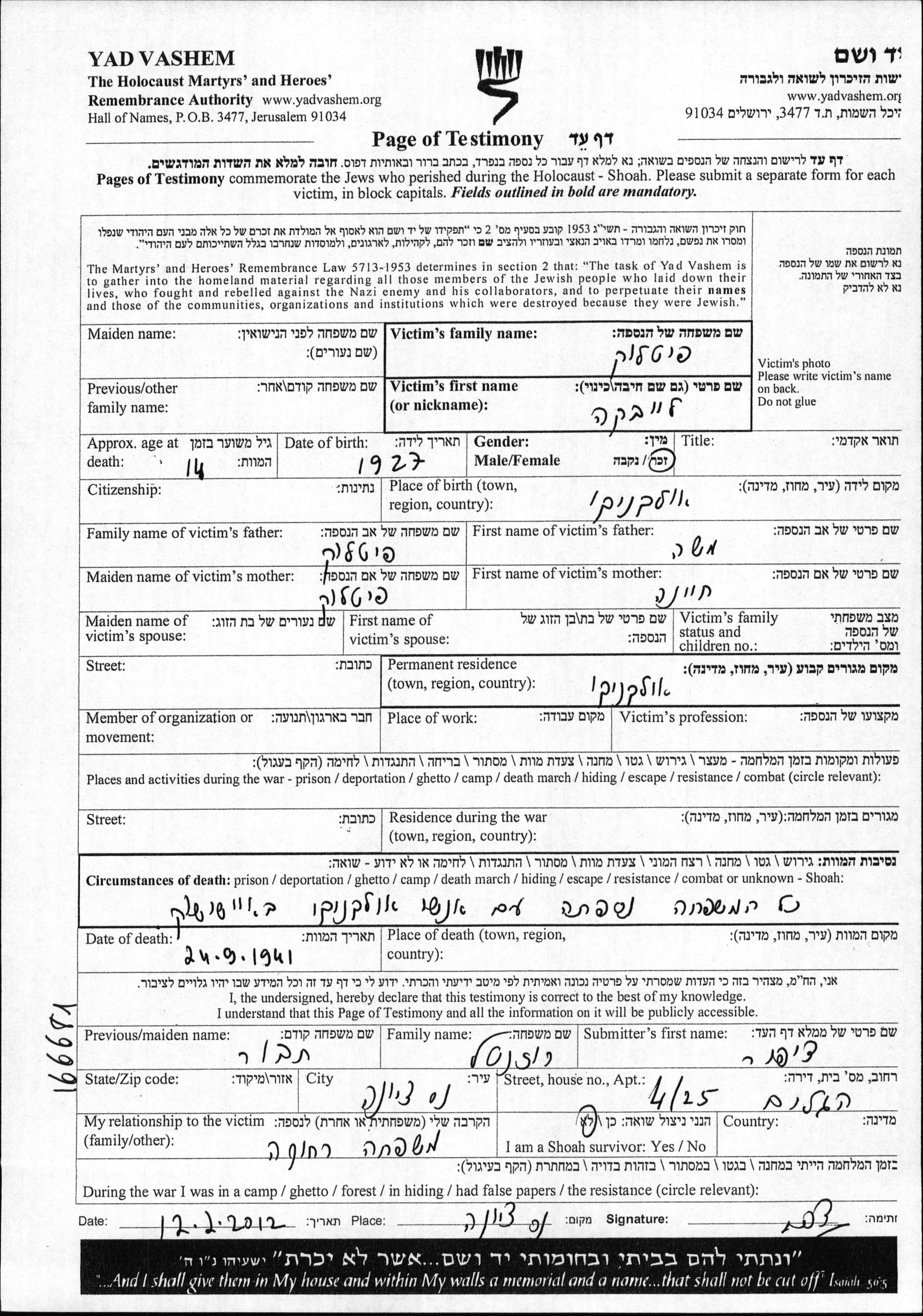 מאגר שמות קרבנות השואה
