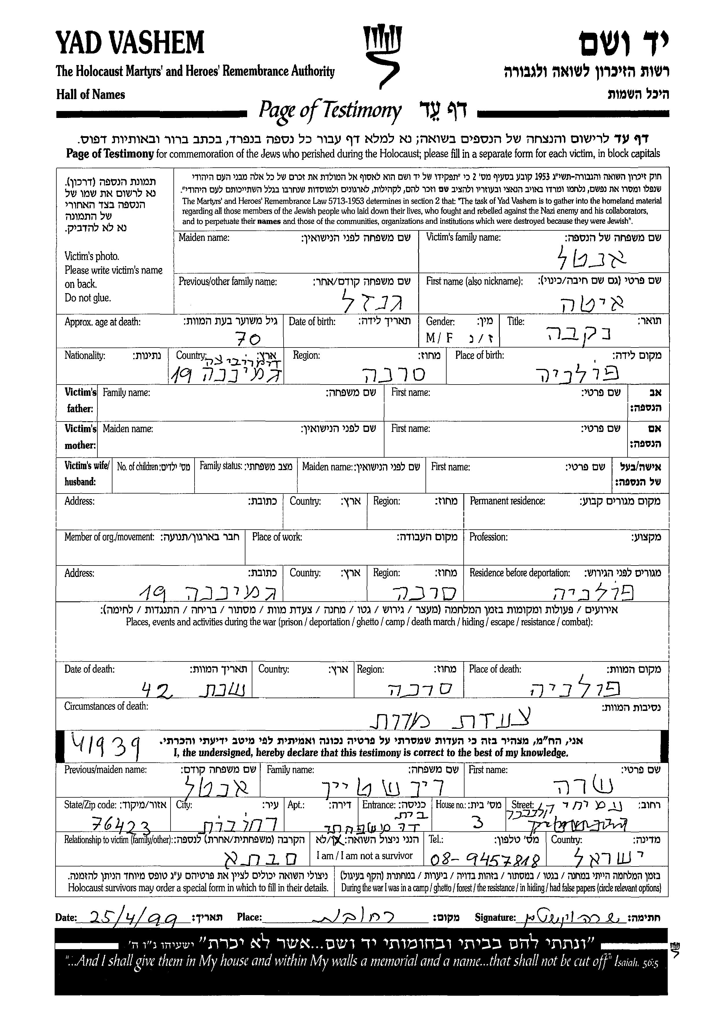 יד ושם - המפעל להנצחת השמות בדפי עד