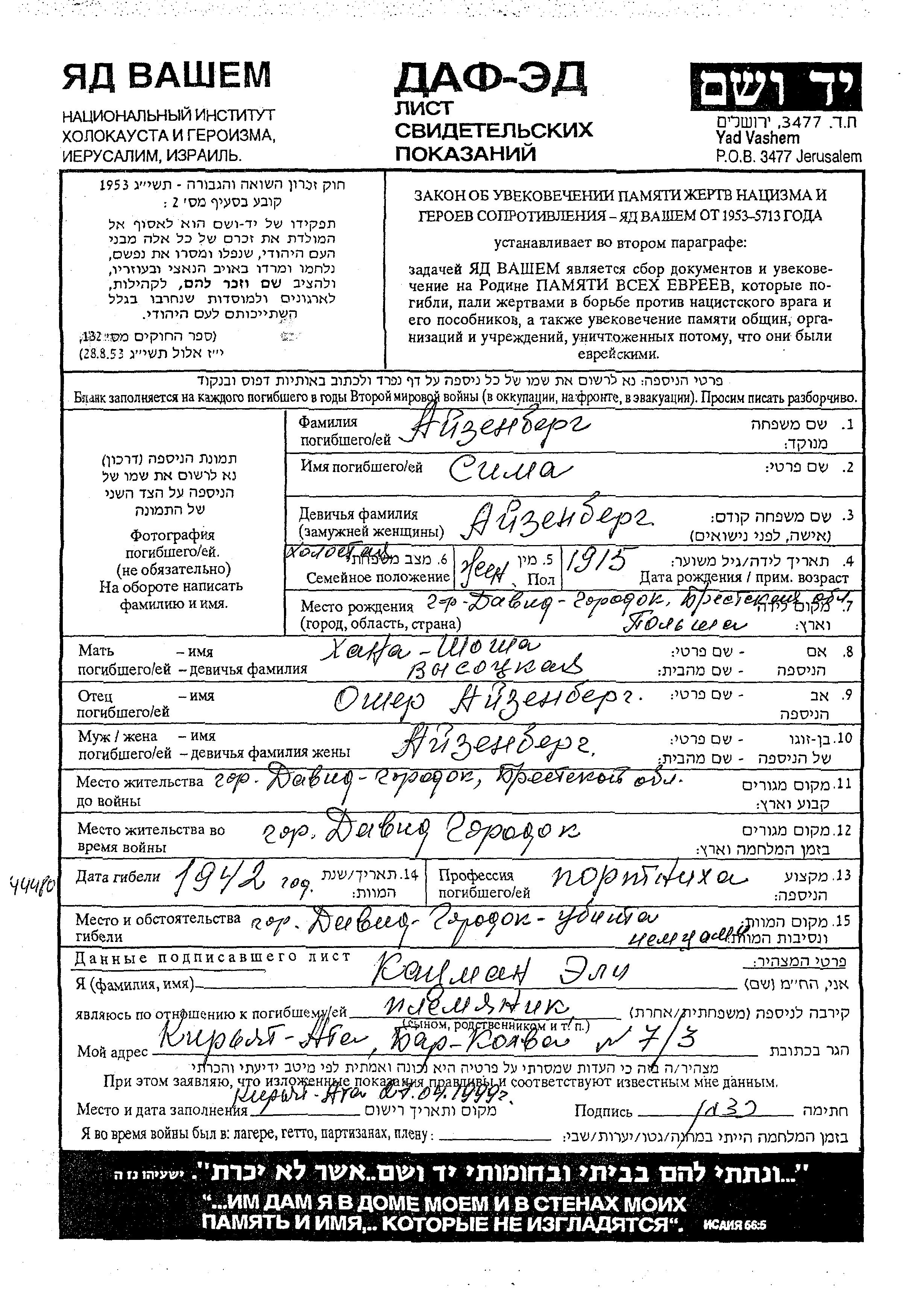 יד ושם - המפעל להנצחת השמות בדפי עד