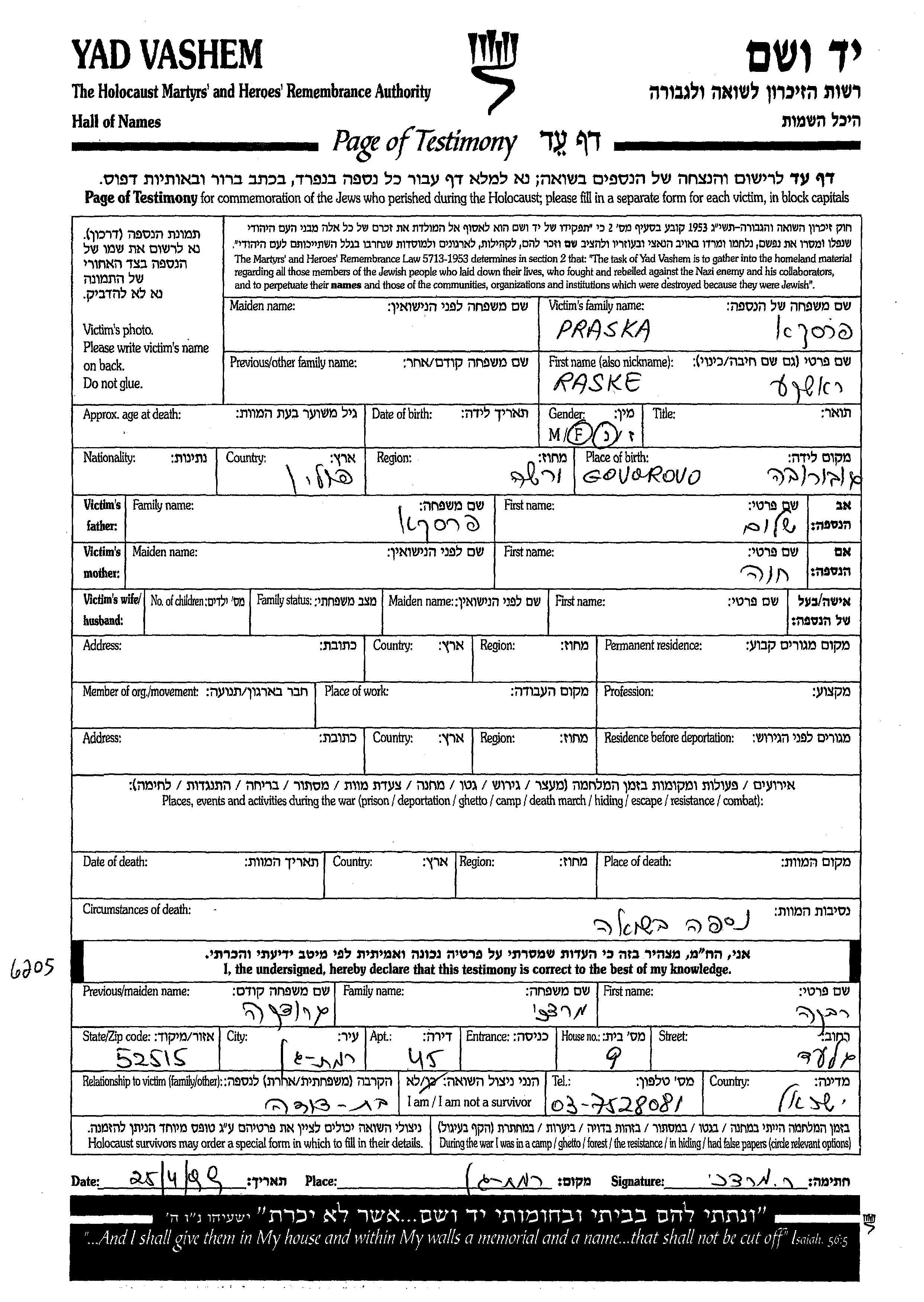 יד ושם - המפעל להנצחת השמות בדפי עד