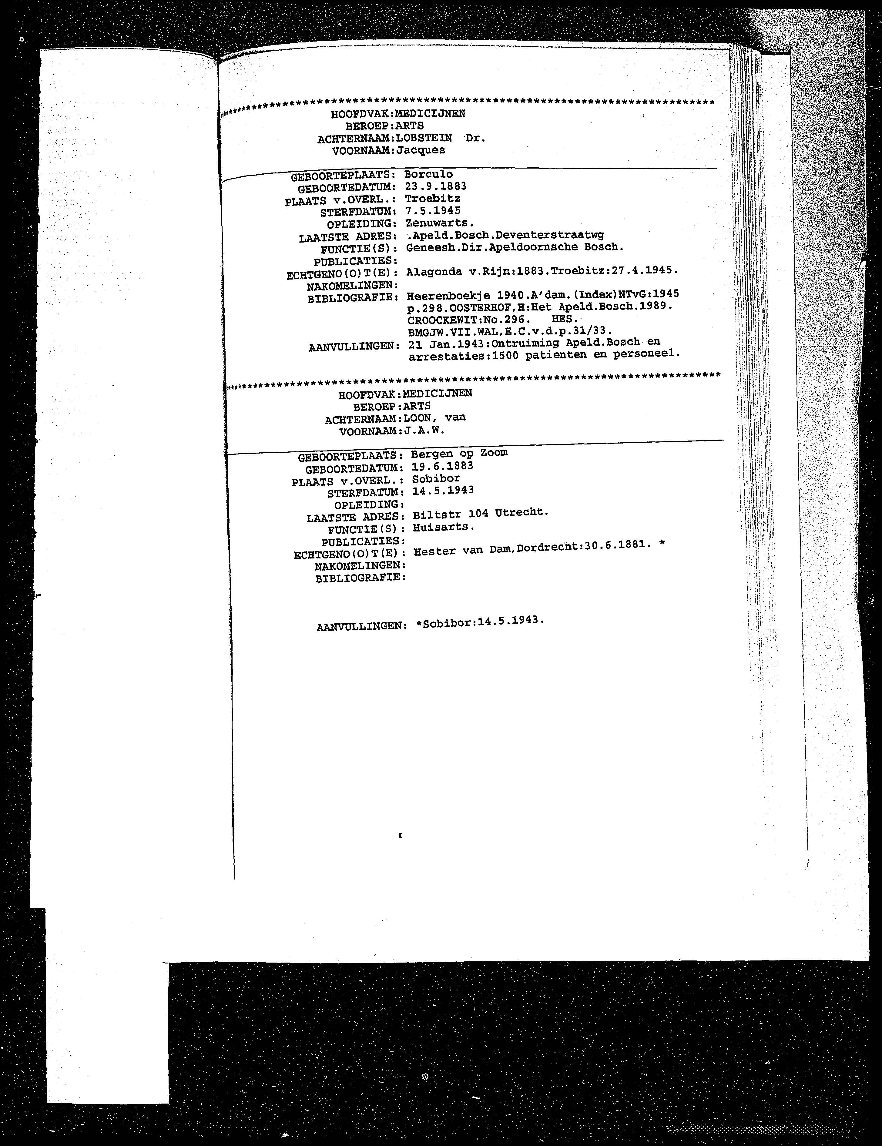 רשימת רופאים יהודים מ- Netherlands שנספו בשואה