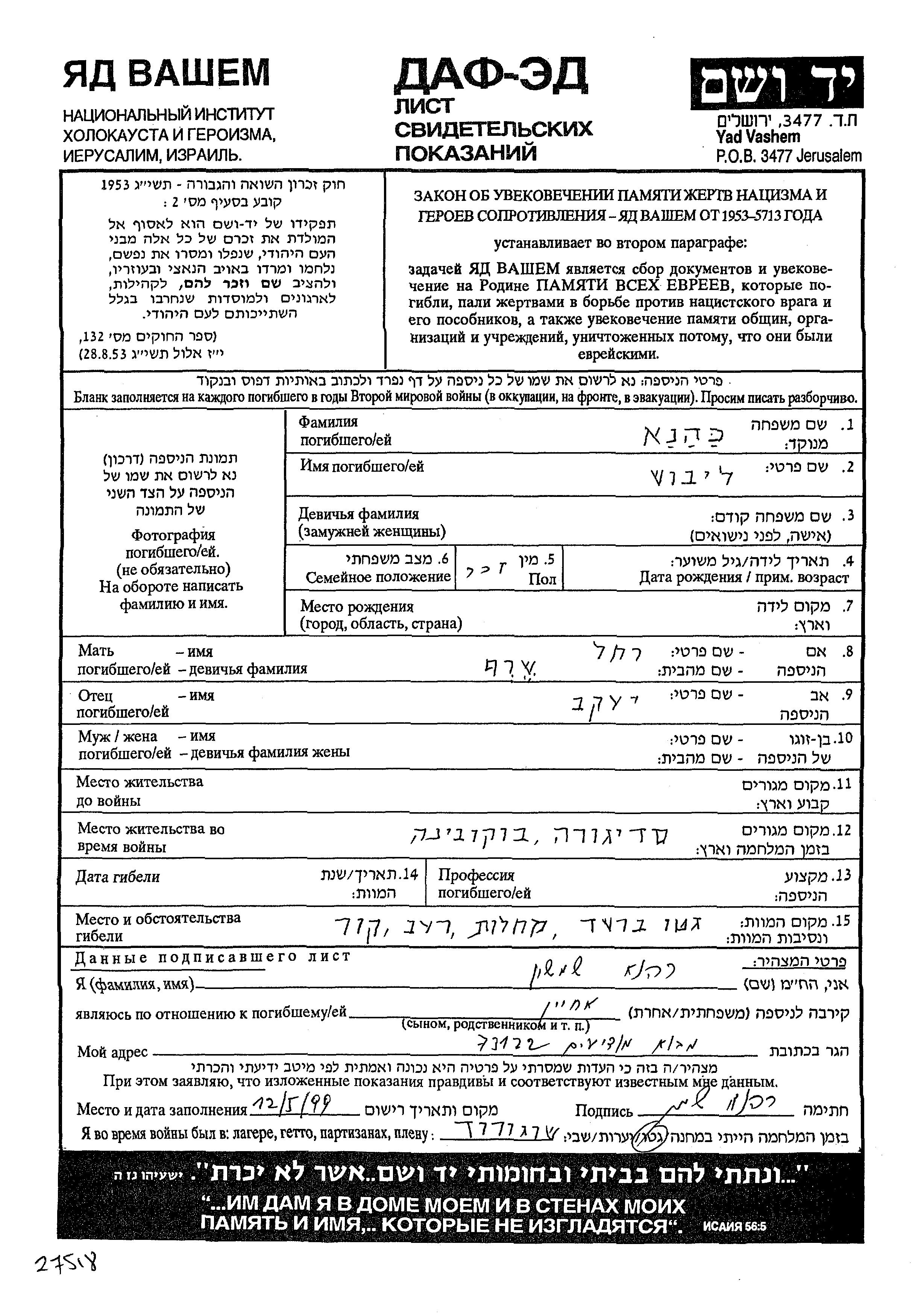 Поиск подателя Листа свидетельских показаний. Поиск по любому имени, включая уменьшительное или прозвище