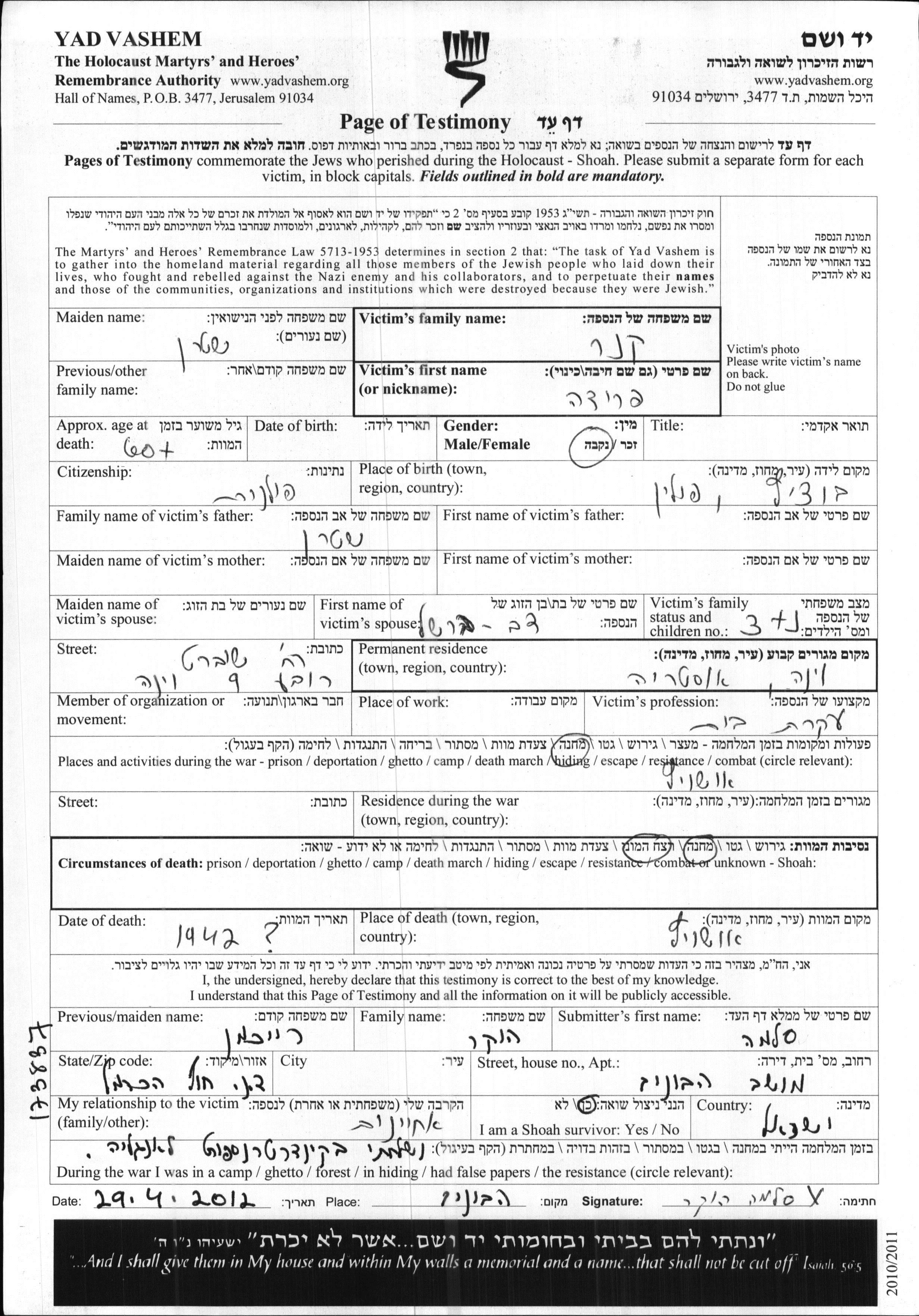Поиск подателя Листа свидетельских показаний. Поиск по любому имени, включая уменьшительное или прозвище