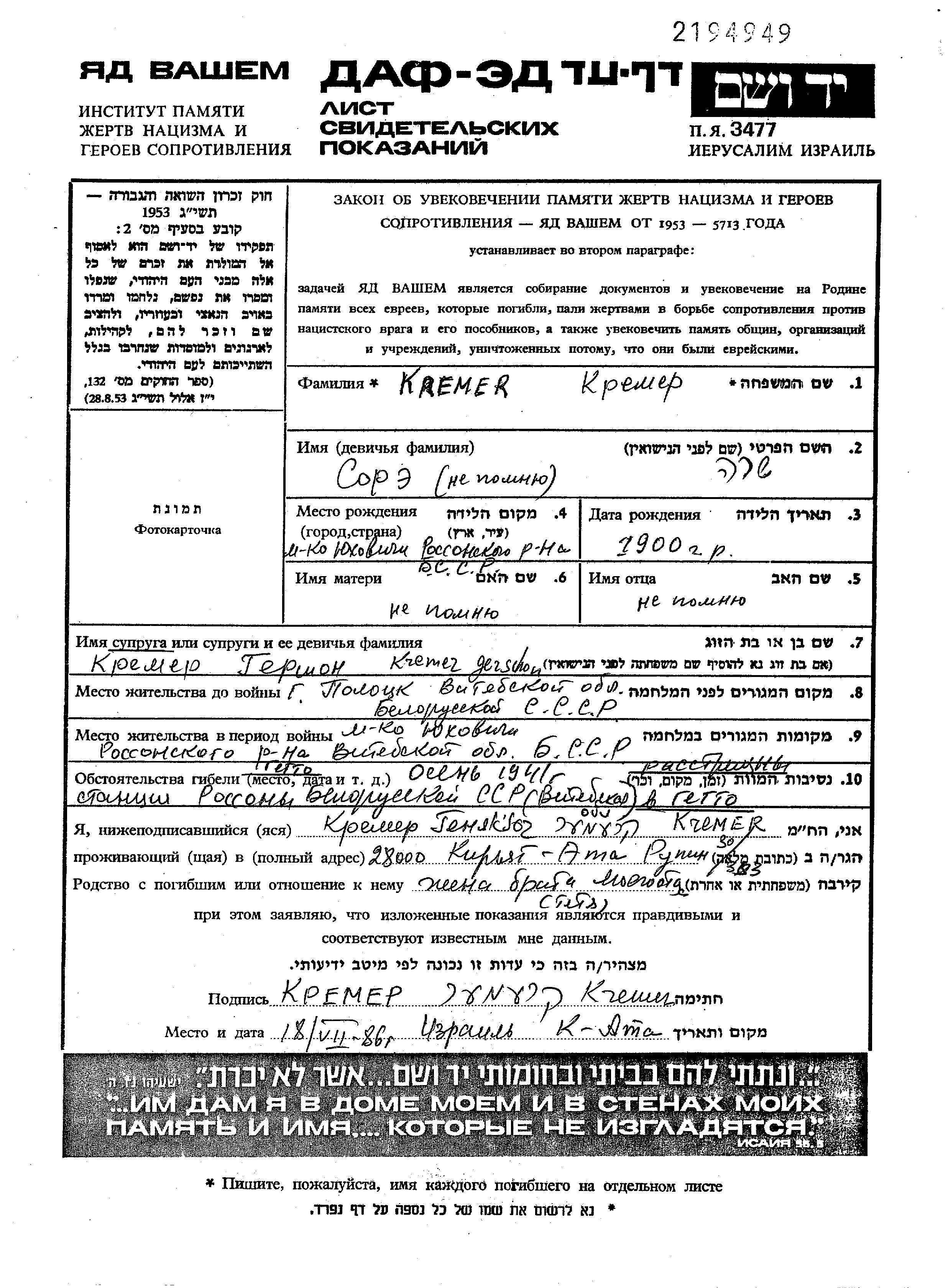 Поиск подателя Листа свидетельских показаний. Поиск по любому имени, включая уменьшительное или прозвище