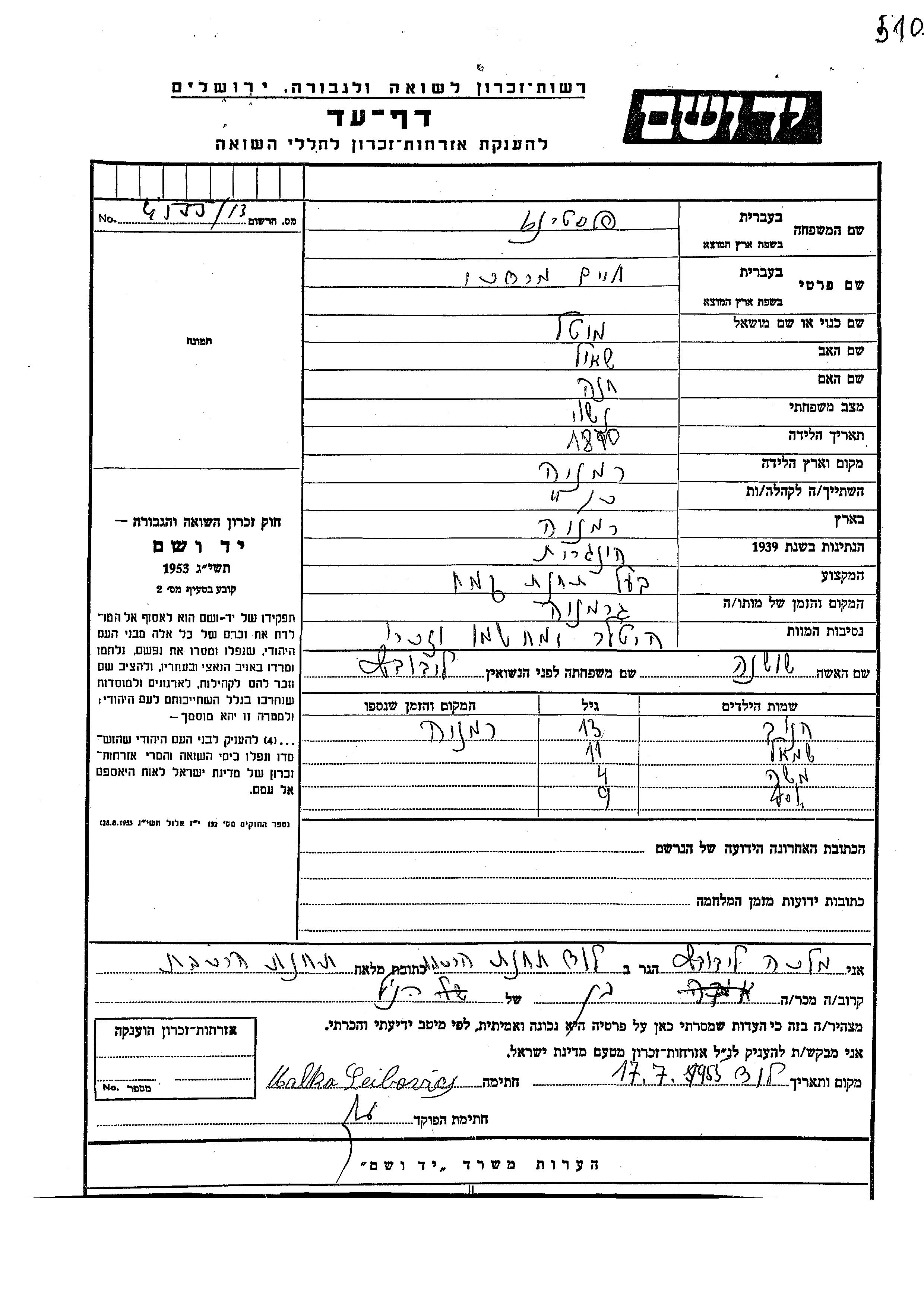 Поиск подателя Листа свидетельских показаний. Поиск по любому имени, включая уменьшительное или прозвище