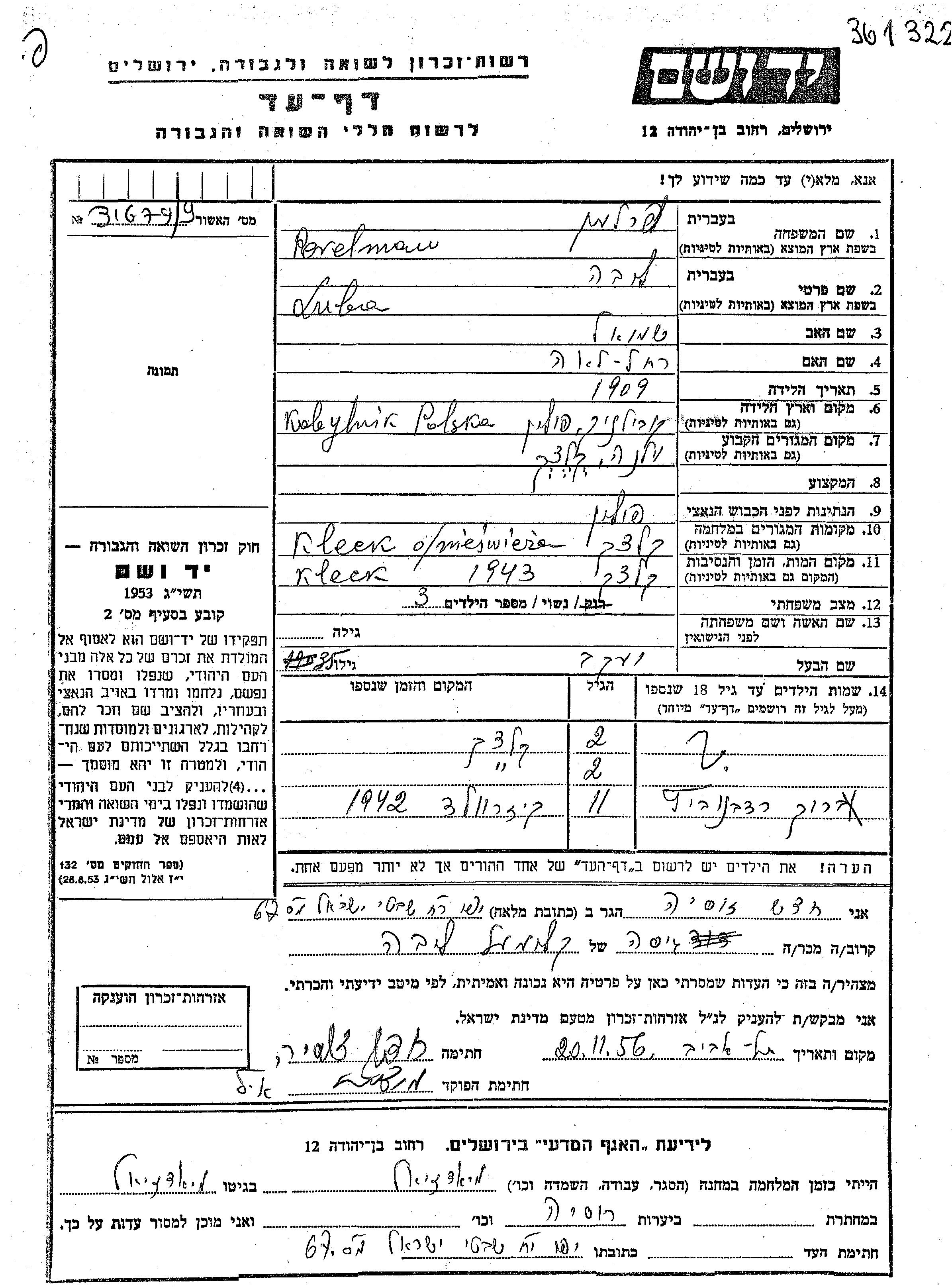 Яд Вашем - Листы свидетельских показаний Мемориального фонда