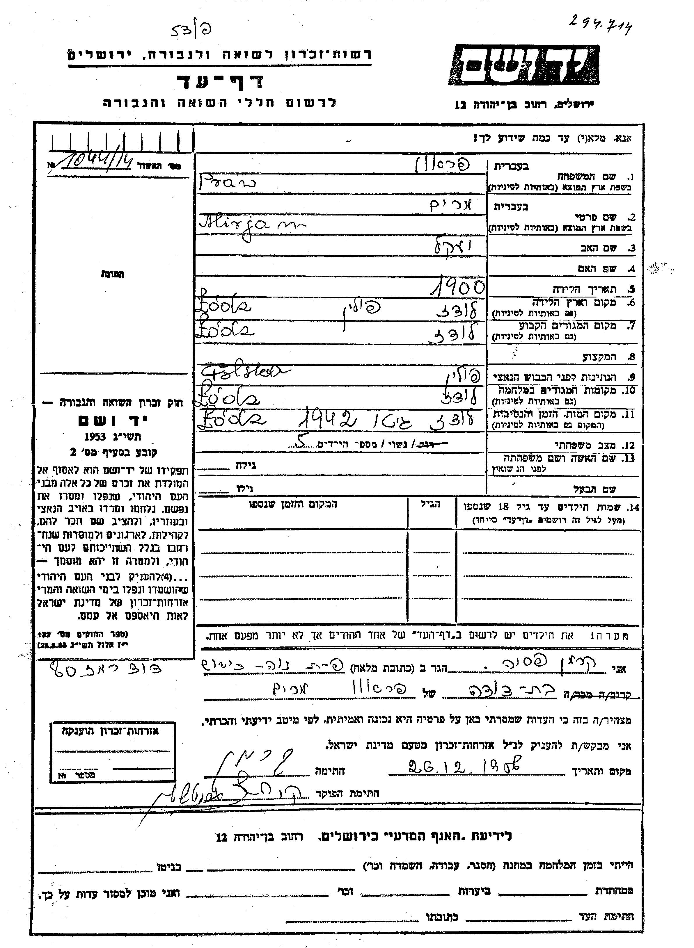 Яд Вашем - Листы свидетельских показаний Мемориального фонда
