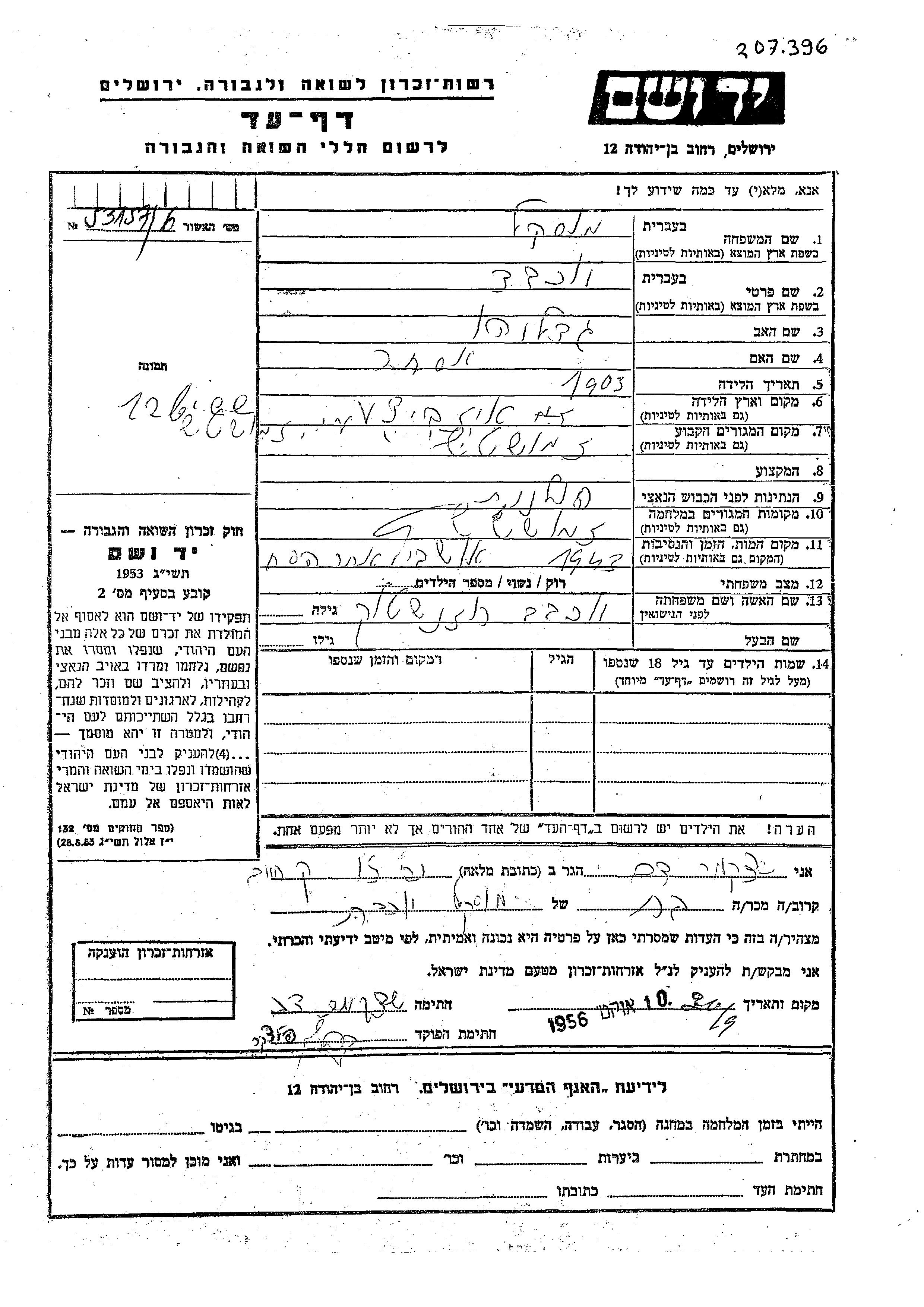 Яд Вашем - Листы свидетельских показаний Мемориального фонда