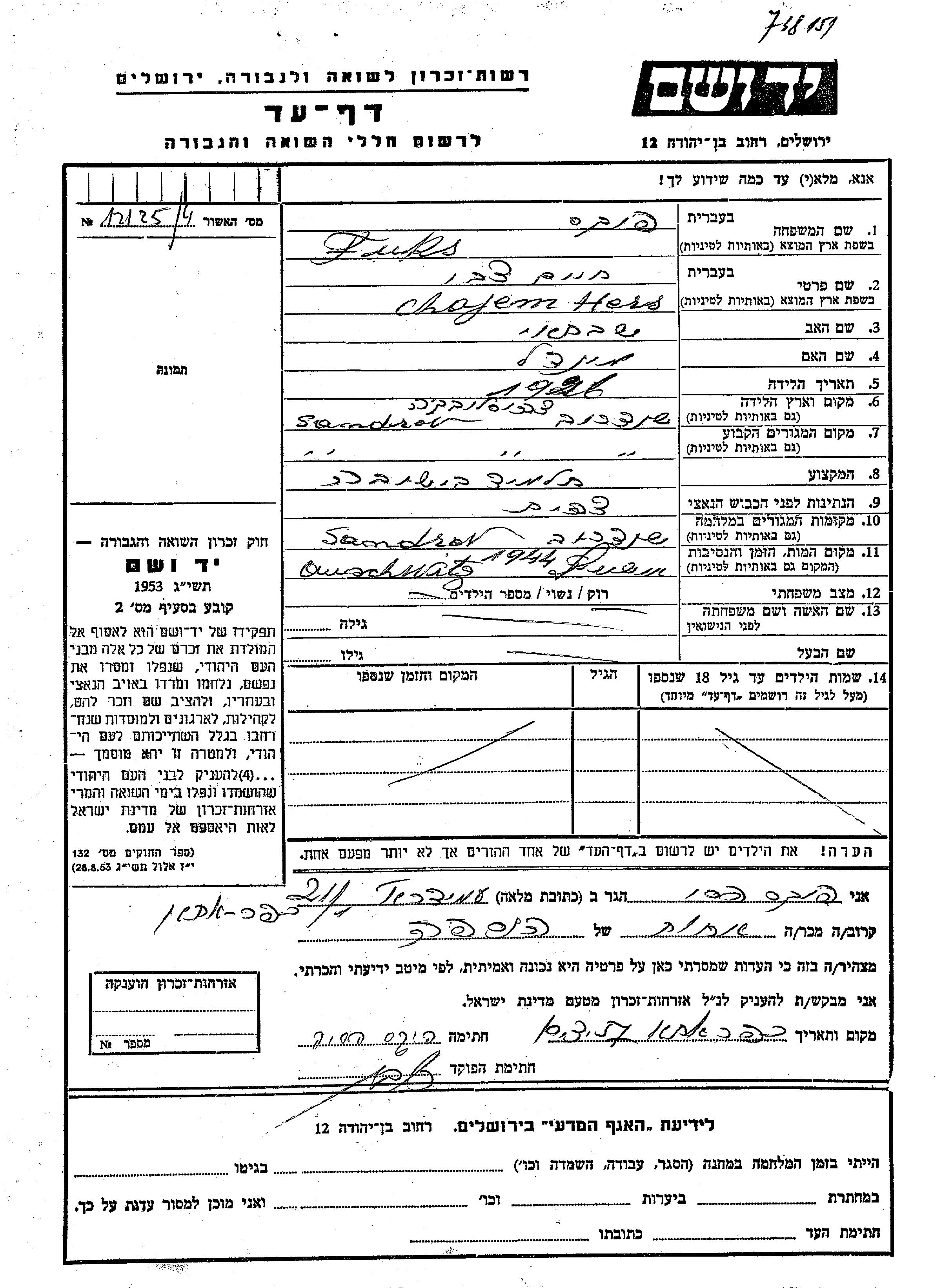 Яд Вашем - Листы свидетельских показаний Мемориального фонда