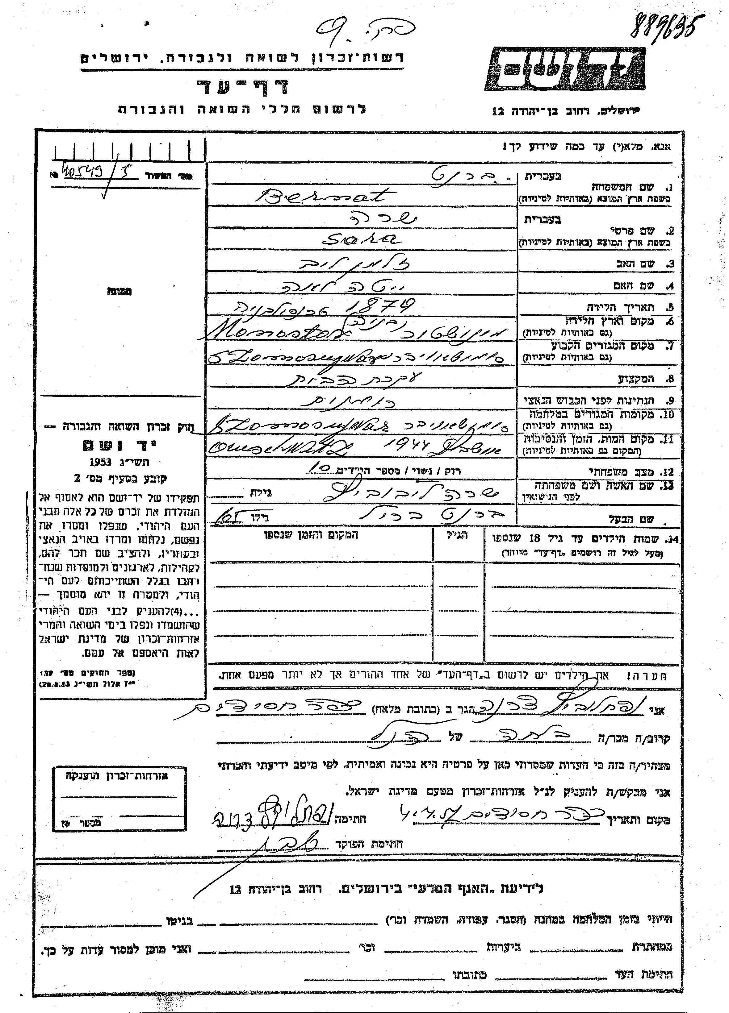 Бернат Сара 1879 Самошуйвар, Румыния Лист свидетельских показаний