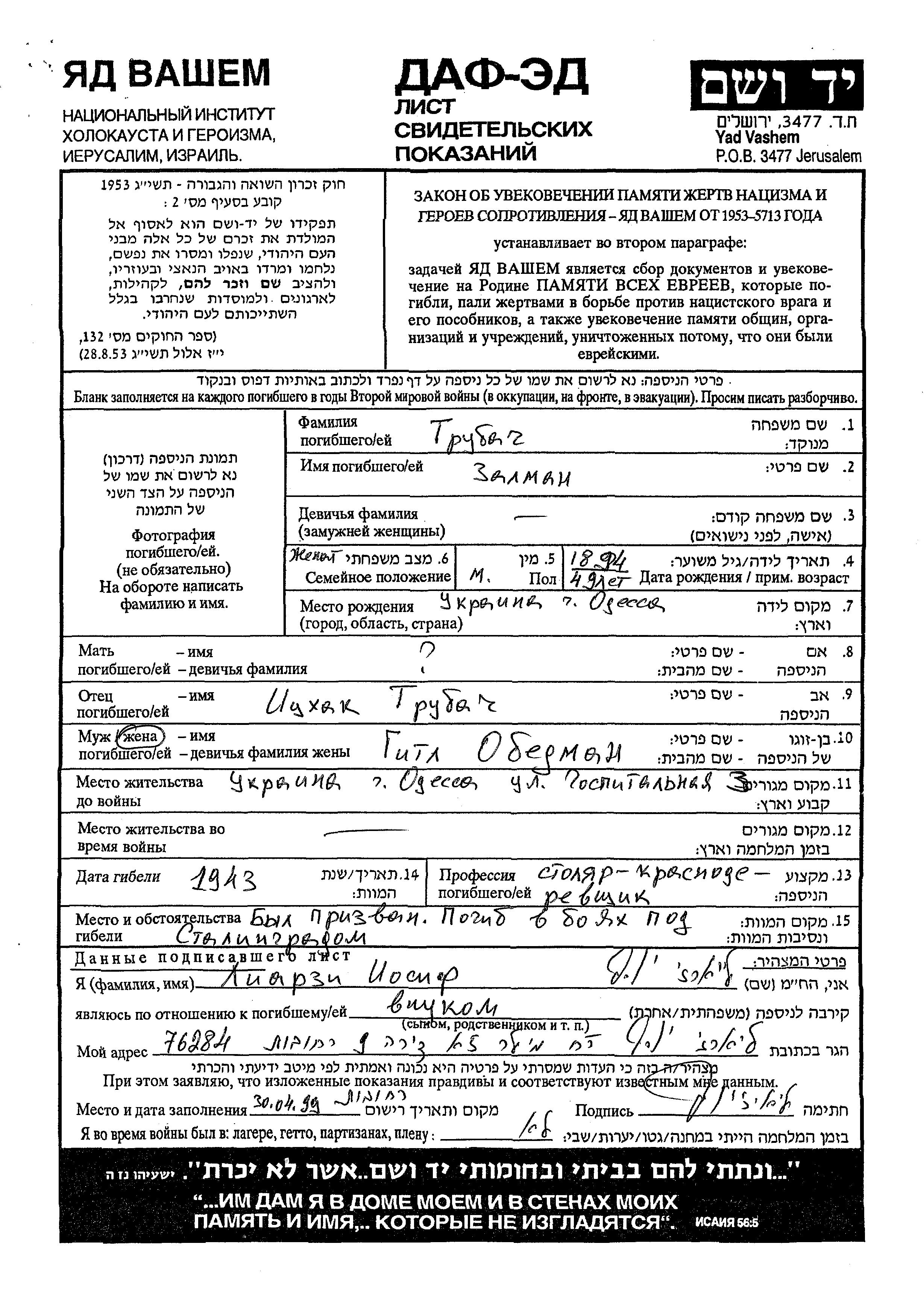 Поиск подателя Листа свидетельских показаний. Поиск по любому имени, включая уменьшительное или прозвище