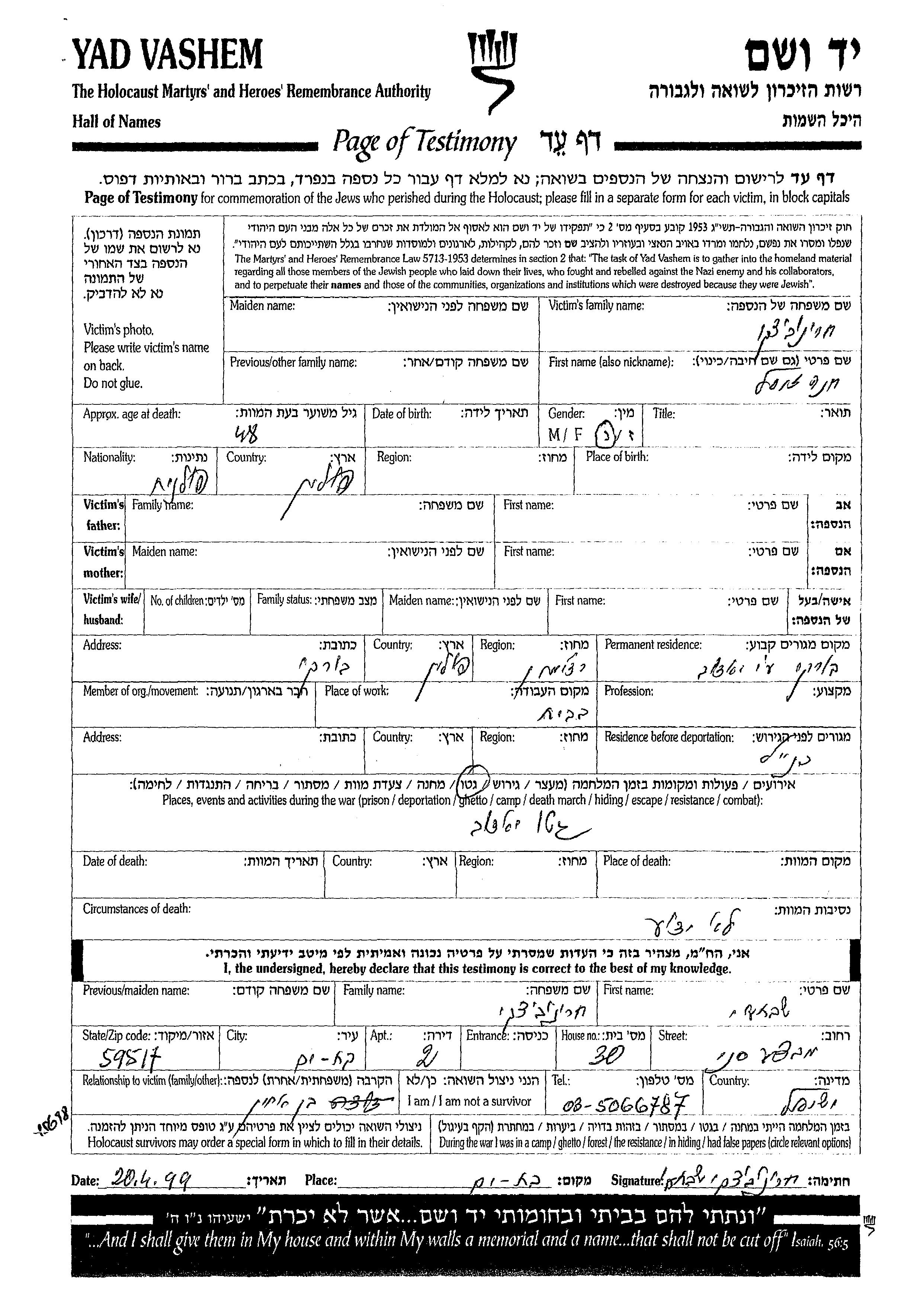 Яд Вашем - Листы свидетельских показаний Мемориального фонда